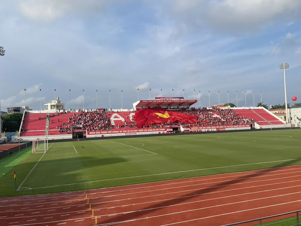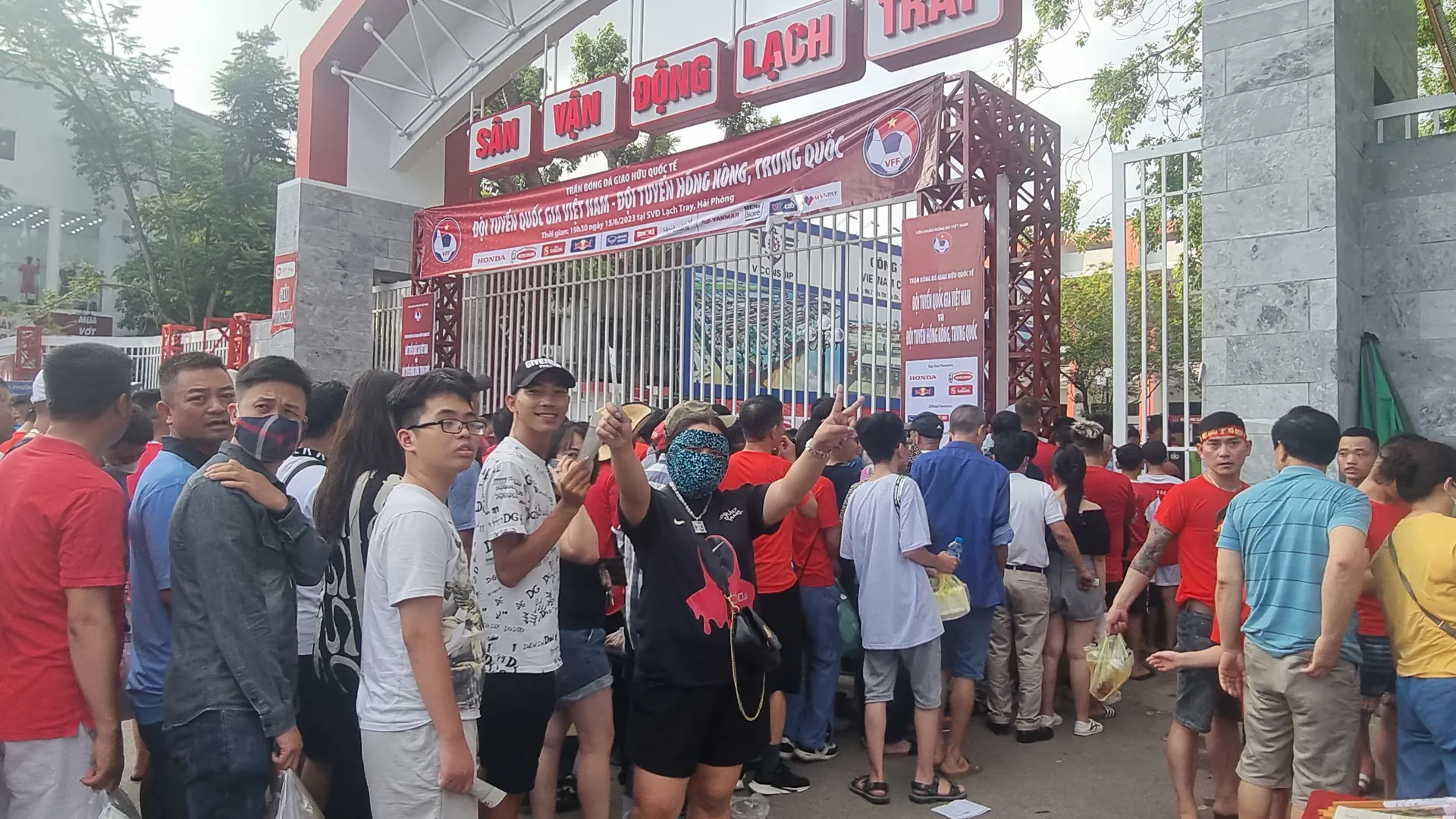 Mậc dù trận đấu còn khoảng hơn 1 tiếng nữa mới bắt đầu nhưng "chảo lửa" Lạch Tray đã có khá đông khán giả tới cổ vũ cho đội tuyển Việt Nam.