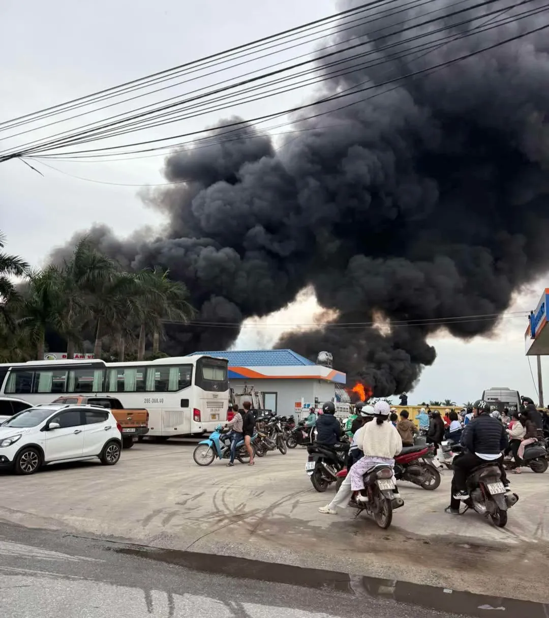 Khoảnh 8 giờ sáng 14/12, người dân phát hiện khói đen bốc cao từ nhà xưởng rộng hơn 500 m2 của Công ty TNHH Oanh Vân. Ít phút sau, lửa bùng mạnh làm sập một phần mái, khói đen dày đặc lan rộng, có thể quan sát từ khoảng cách xa.