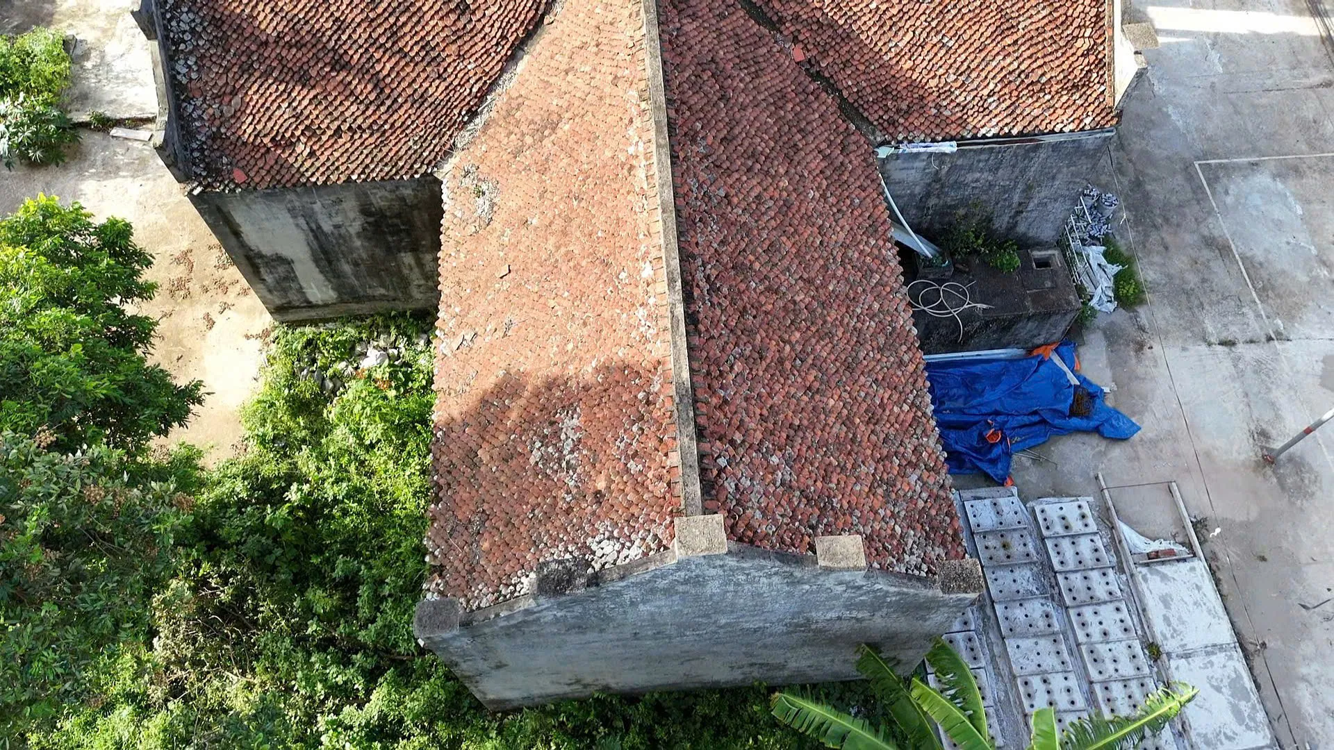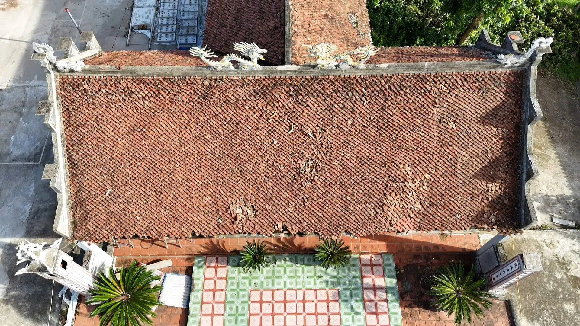 Phần mái ngói của miếu đã bị thủng lỗ chỗ. Ảnh: Tiến Bảo