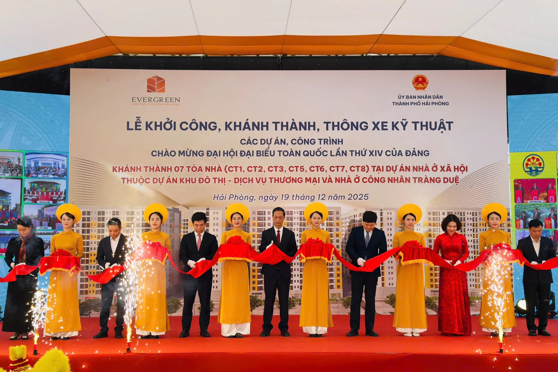 Lễ khởi công, khánh thành các công trình dự án được tiến hành đồng thời và kết nối trực tuyến tại 11 điểm cầu từ các địa điểm trên khắp thành phố thuộc địa bàn các phường: Lê Chân, An Dương, Ngô Quyền, Thuỷ Nguyên, Lê Thanh Nghị, Nguyễn Đại Năng, Kinh Môn; các xã Gia Lộc, An Hưng, Cẩm Giàng, Vĩnh Thuận. Trong đó, Lễ khánh thành một số công trình thuộc Dự án Nhà ở xã hội thuộc dự án Khu đô thị - dịch vụ thương mại và nhà ở công nhân Tràng Duệ tại phường An Dương và Lễ khởi công các dự án đầu tư xây dựng nút giao thông khác mức đường Lê Hồng Phong - Nguyễn Trãi, Bùi Viện - Lê Hồng Phong và Bùi Viện - Võ Nguyên Giáp tại phường Lê Chân là 2 trong số 79 điểm cầu toàn quốc trong chương trình Cầu truyền hình của Đài Truyền hình Việt Nam.