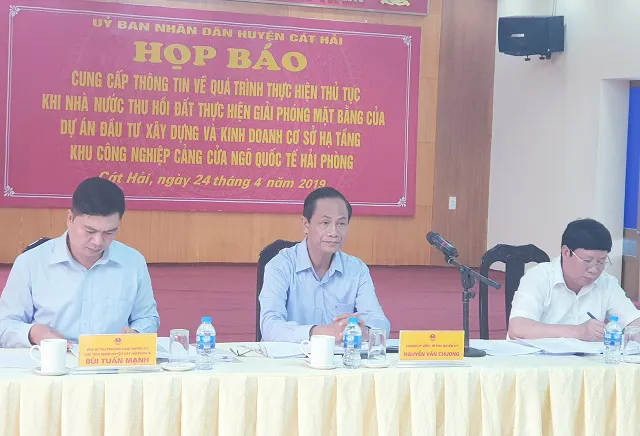 Ông Nguyễn Văn Chương - Bí thư Huyện ủy huyện Cát Hải cho biết, việc tổ chức họp báo để đảm bảo tính minh bạch, công khai chính sách pháp luật hiện hành của nhà nước và TP nhằm đảm bảo công bằng và tạo thuận lợi nhất cho người dân. Qua đó, giúp cho 3 hộ gia đình hiện chưa đồng ý nhận tiền bồi thường liên quan đến dự án nắm được đầy đủ thông tin, cùng với UBND huyện Cát Hải tiến hành giải phóng mặt bằng để trả mặt bằng sạch cho chủ đầu tư.