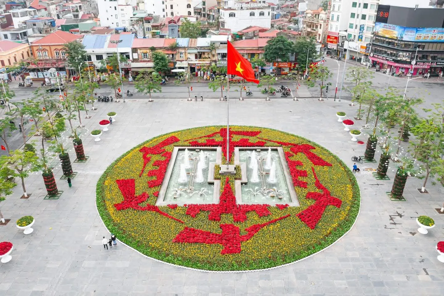 Trung tâm hành chính Bắc Sông Cấm rực rỡ đón Xuân. Ảnh: Vĩnh Quân