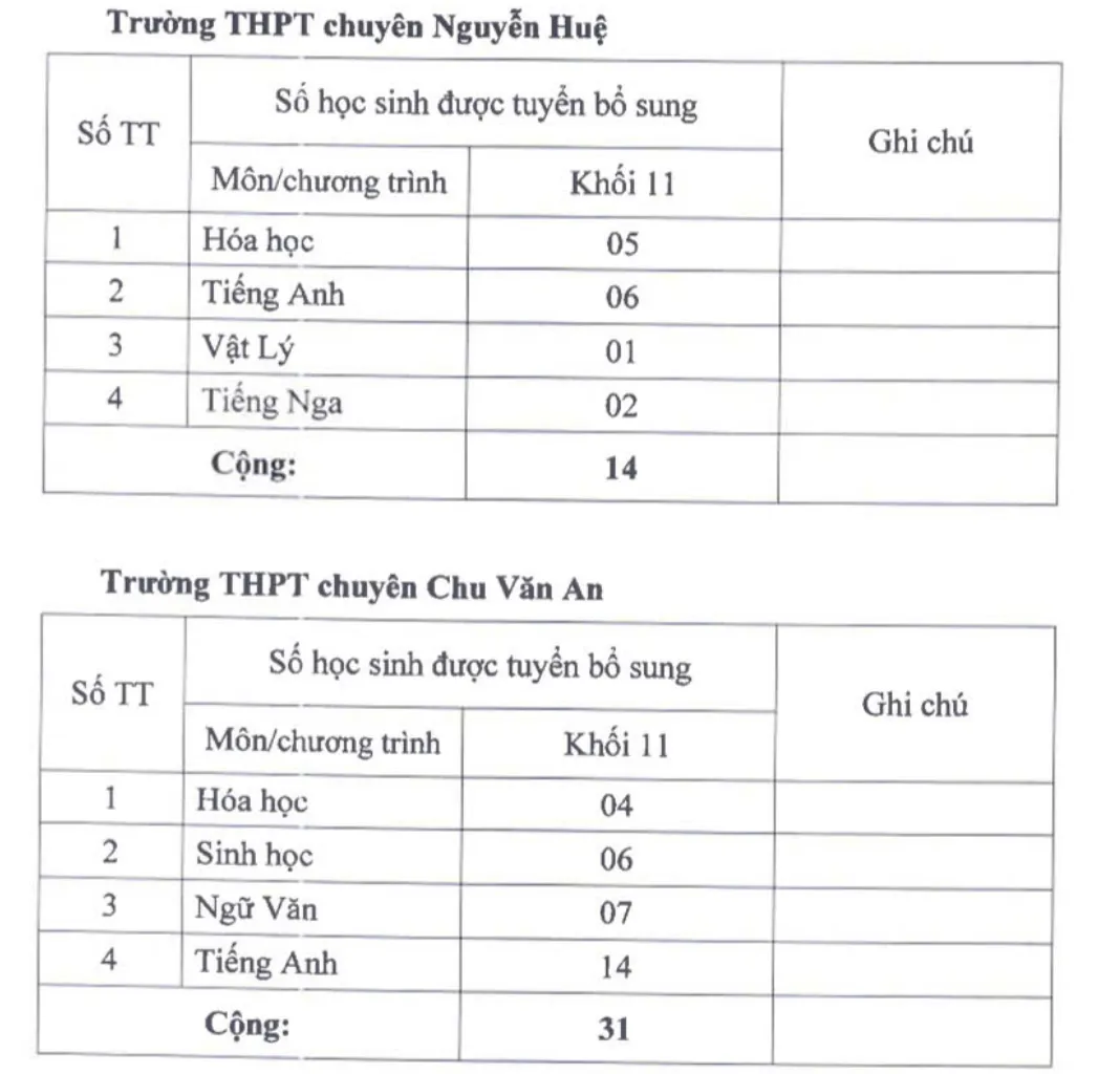 Kinhtedothi - Hai trường THPT chuyên của Hà Nội là THPT chuyên Nguyễn Huệ và THPT chuyên Chu Văn An sẽ tuyển bổ sung tổng số 45 chỉ tiêu lớp 11 năm học 2025 - 2026.