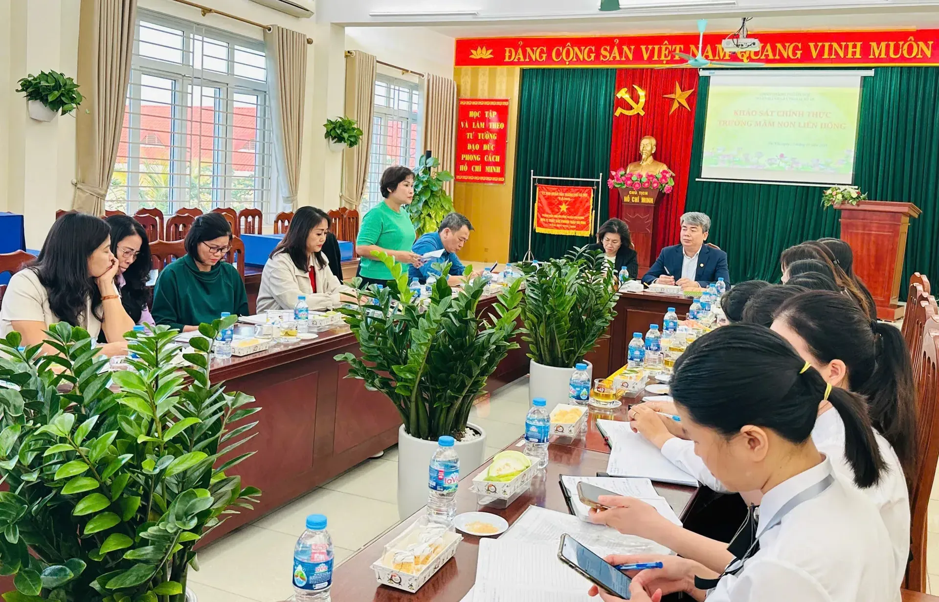 Đoàn kiểm định chất lượng giáo dục kiểm tra tại Trường Mầm non Liên Hồng, xã Ô Diên.