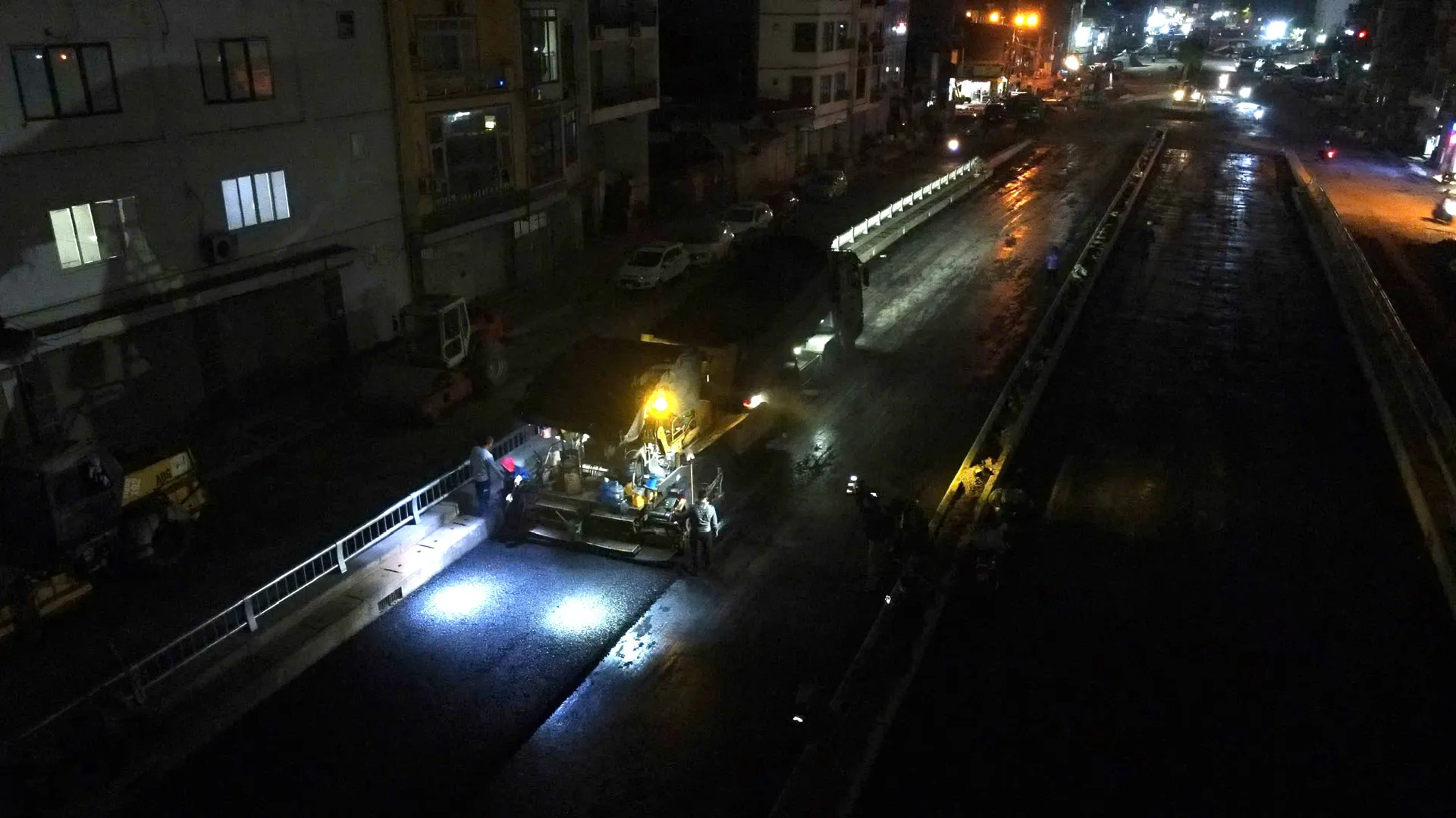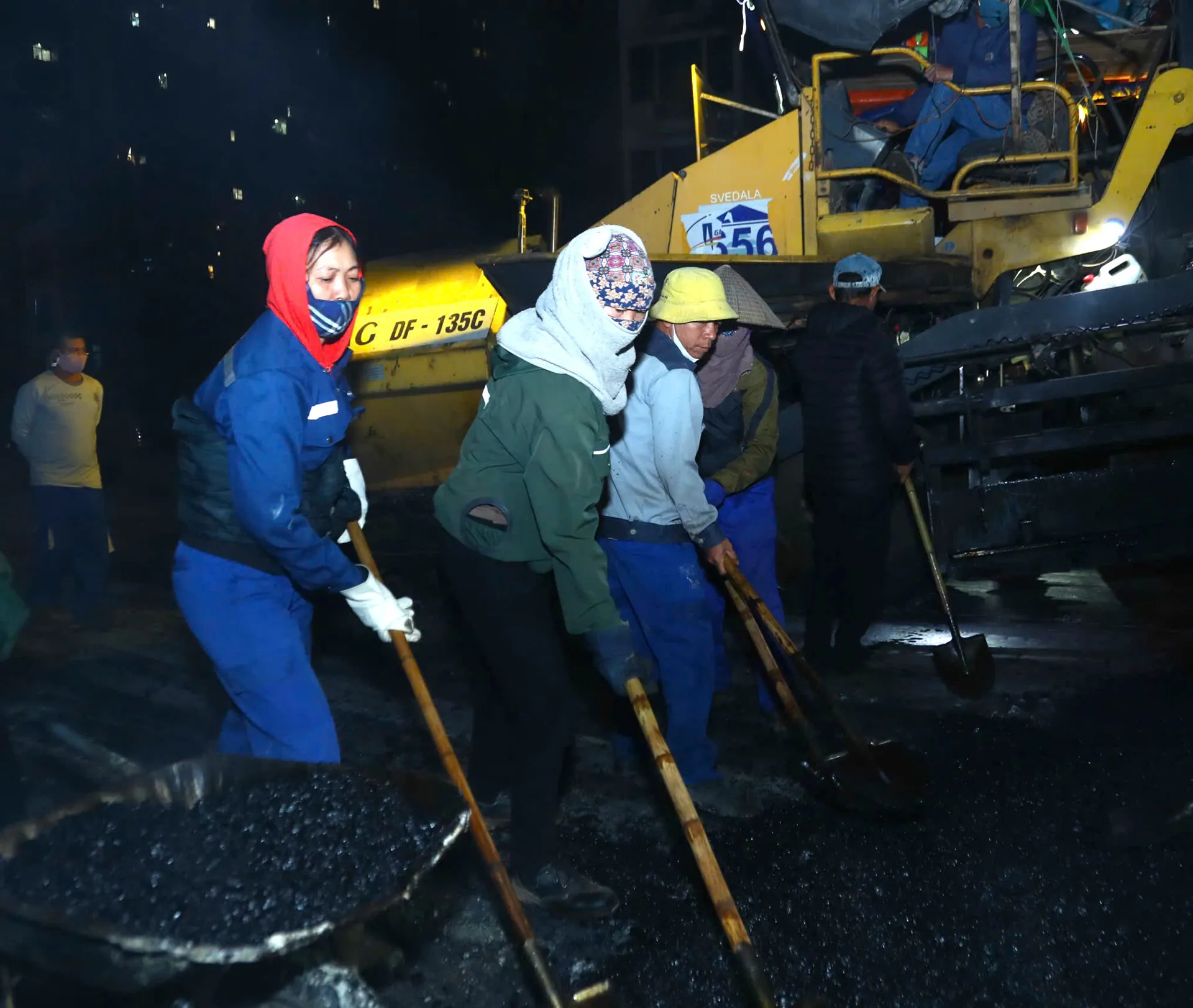 Mỗi đêm khoảng 400 tấn đường nhựa được trải thảm
