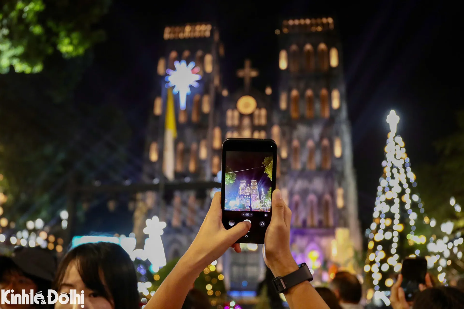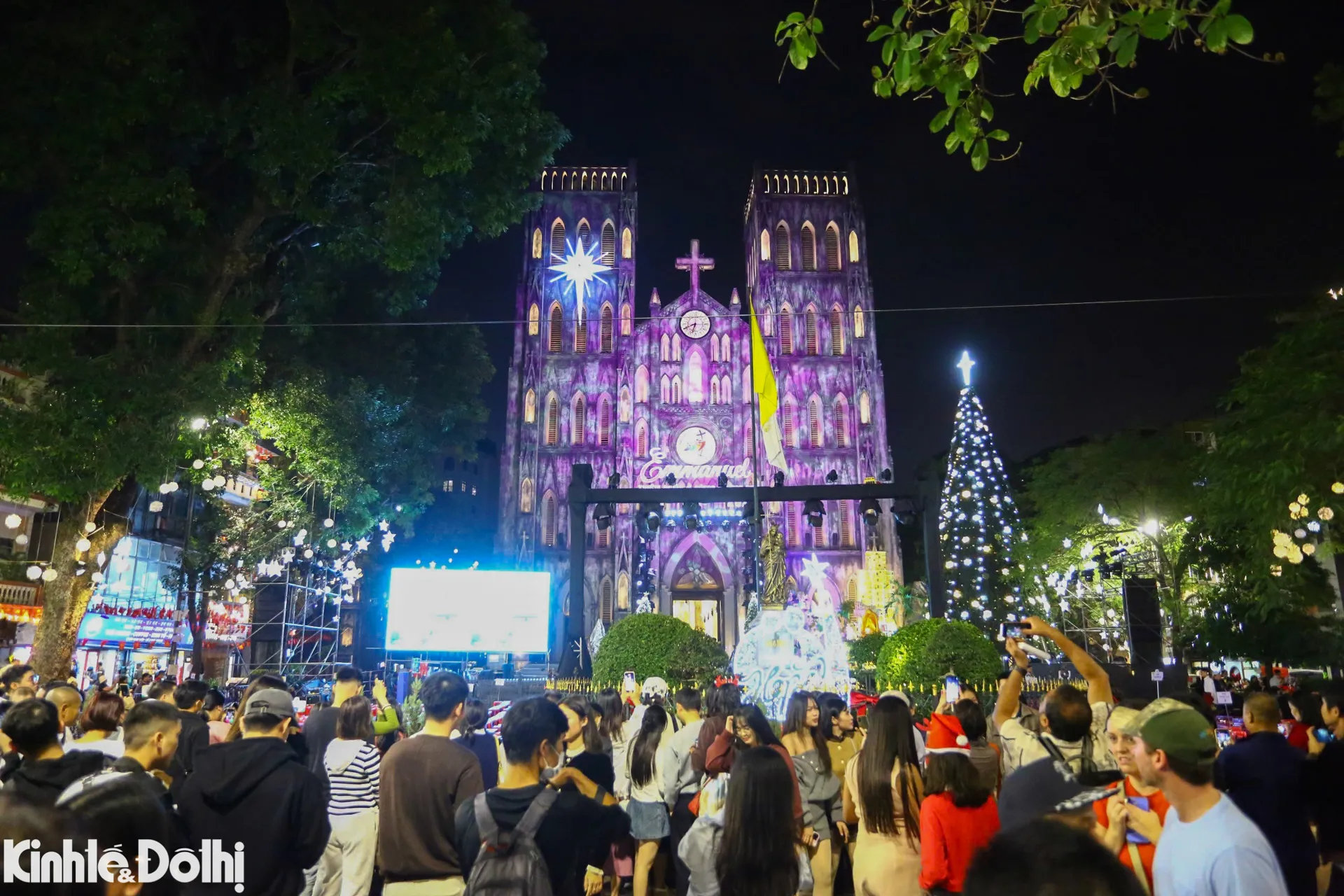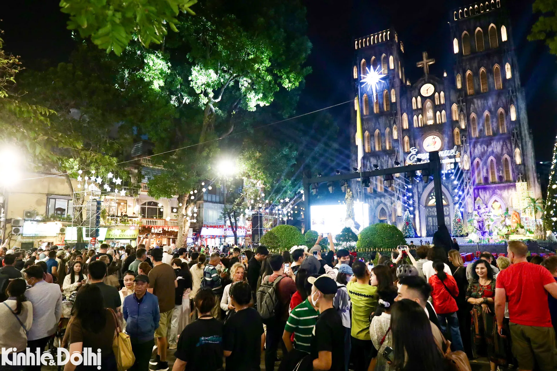 Kinhtedothi - Tối 24/12, hàng nghìn người dân, đặc biệt là các bạn trẻ và nhiều gia đình đổ về khu vực Nhà thờ Lớn Hà Nội đón Giáng sinh 2025.