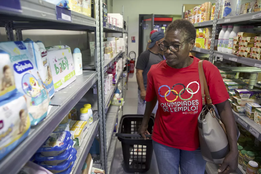 Một phần thực phẩm mà ngân hàng thực phẩm thu thập được đã được chuyển đến một cửa hàng tạp hóa ở Epinay-sur-Seine, một vùng ngoại ô phía Bắc Paris và được bán với giá thấp.