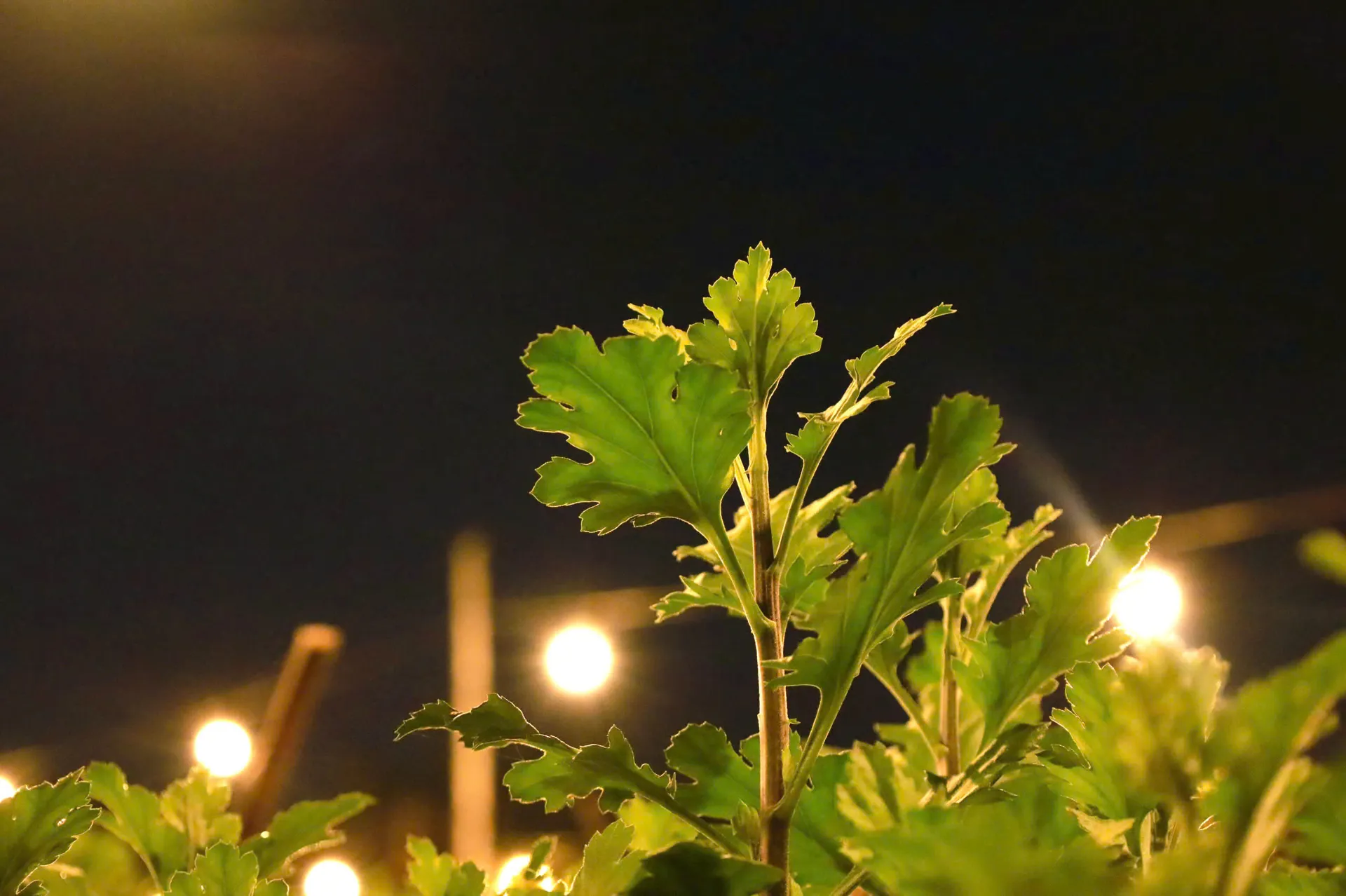 Nhờ được chiếu sáng liên tục, cây cúc đạt chiều cao khoảng 70–80cm trước khi người trồng tắt đèn để cây bắt đầu ra nụ.