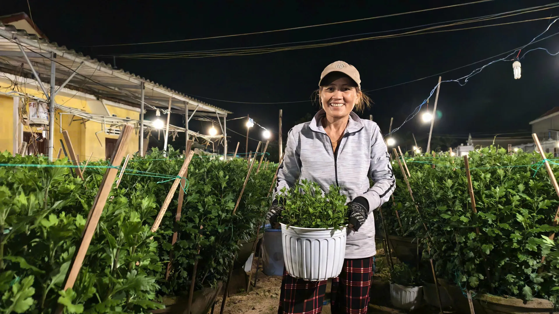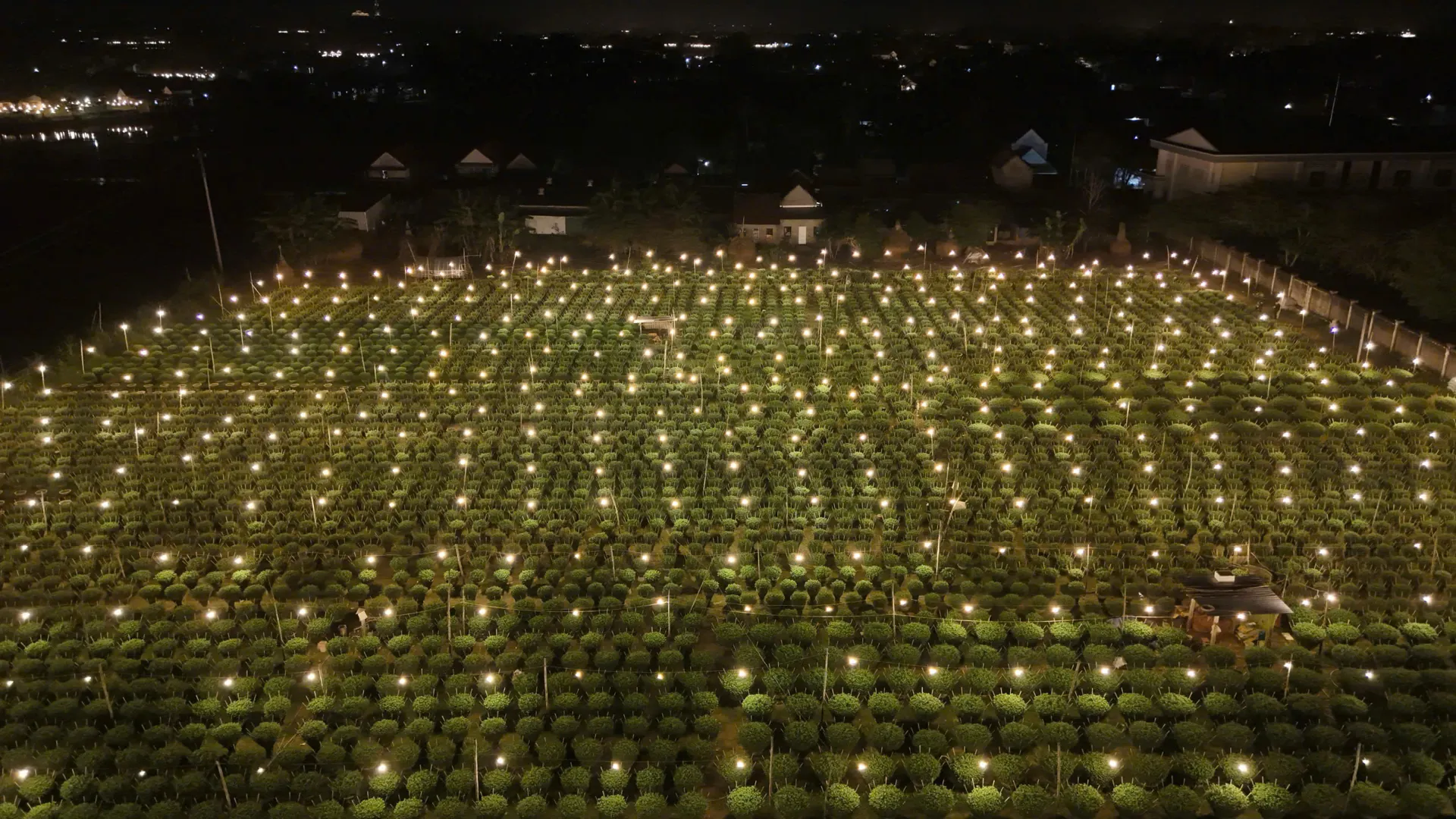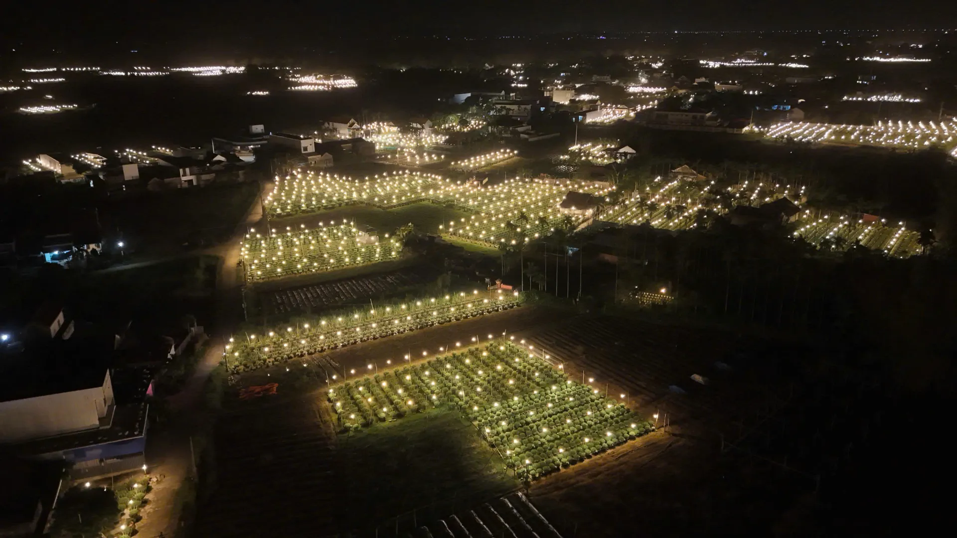 Hàng triệu bóng đèn thắp sáng xuyên đêm ở vùng trồng cúc lớn nhất miền Trung