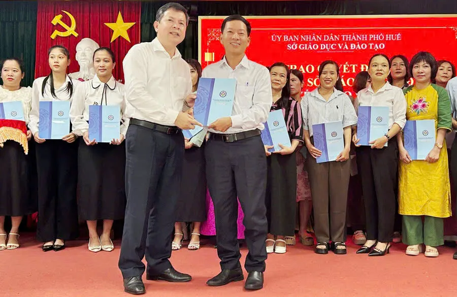 Mới đây, Sở GD&ĐT TP Huế đã tổ chức trao quyết định thuyên chuyển viên chức năm học 2025-2026 cho 56 giáo viên, nhân viên, gồm 16 chỉ tiêu bậc mầm non, 9 chỉ tiêu tiểu học và 31 chỉ tiêu THCS. Đây là đợt thuyên chuyển có quy mô lớn, mang ý nghĩa đặc biệt khi lần đầu tiên ngành giáo dục TP Huế thực hiện điều tiết, bố trí giáo viên trên toàn địa bàn thành phố trong bối cảnh vận hành mô hình chính quyền địa phương 2 cấp.