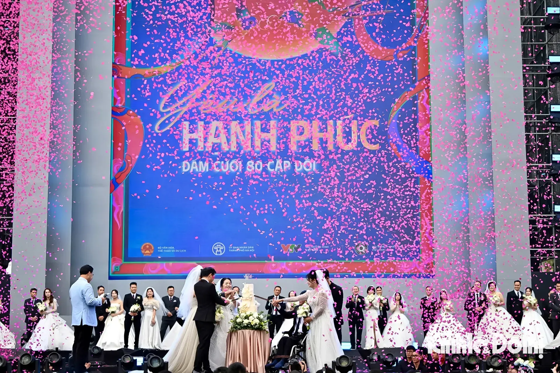 Ngày hội Việt Nam hạnh phúc - Vietnam Happy Fest 2025 có điểm nhấn đặc biệt là lễ cưới tập thể của 80 cặp đôi, được tổ chức ngay sau lễ khai mạc. Ảnh: Duy Minh