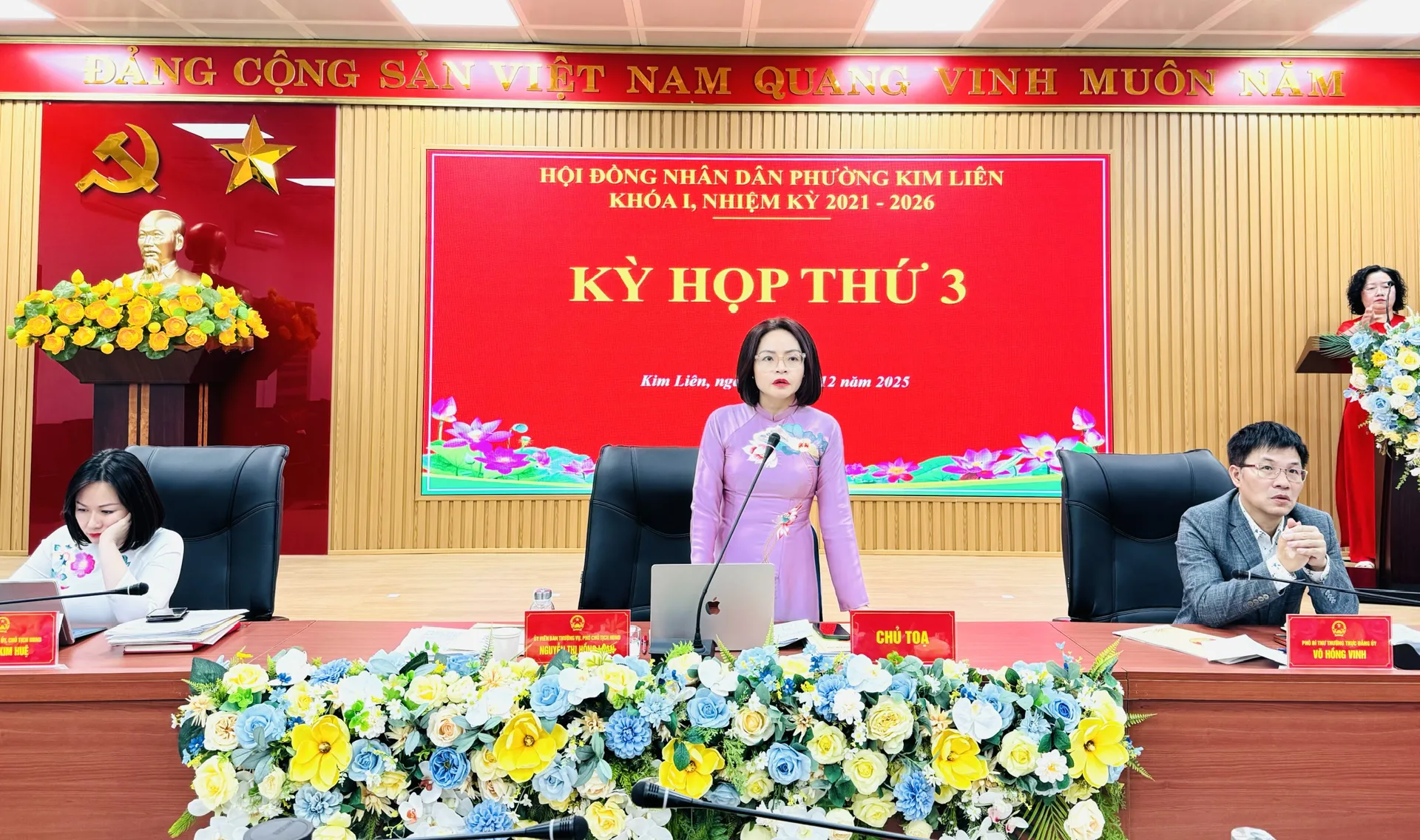 Báo cáo về tình hình phát triển kinh tế - xã hội năm 2025 tại kỳ họp cho thấy, trong năm 2025, tình hình phát triển kinh tế - xã hội của phường Kim Liên ổn định, thu ngân sách đạt mức chỉ tiêu, đảm bảo chi đầu tư phát triển, chi thường xuyên và các nhiệm vụ chi khác. Công tác quản lý Nhà nước về đất đai, quản lý và bảo vệ môi trường trên địa bàn đã đi vào nề nếp, các nhiệm vụ, chỉ tiêu thành phố giao hoàn thành theo quy định.
