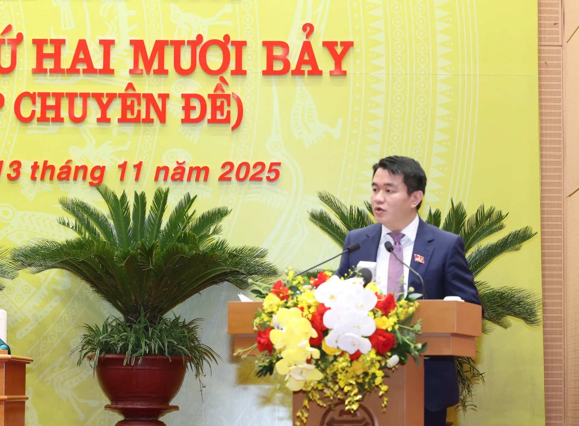 Kinhtedothi - Tại Kỳ họp thứ 27 (kỳ họp chuyên đề) của HĐND TP Hà Nội chiều 13/11, HĐND TP Hà Nội đã thông qua Nghị quyết về việc Quyết định số lượng, tên gọi, phạm vi lĩnh vực phụ trách của các Ban của HĐND TP Hà Nội, số lượng đại biểu HĐND thành phố hoạt động chuyên trách của HĐND TP Hà Nội khóa XVII, nhiệm kỳ 2026 - 2031.