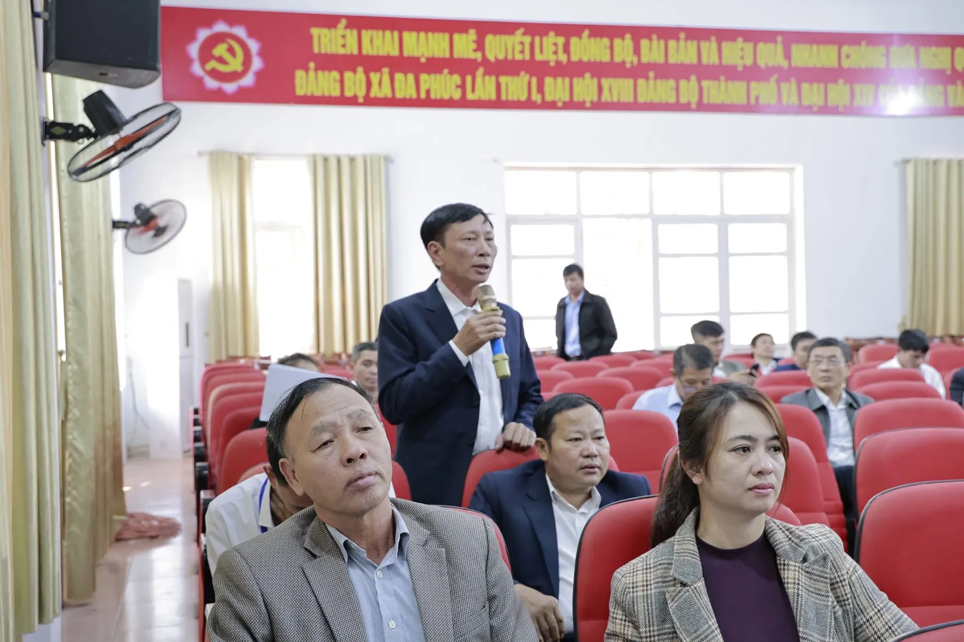 Bí thư Đảng uỷ, Chủ tịch HĐND xã Đa Phúc Nguyễn Hồng Minh phát biểu tại kỳ họp.