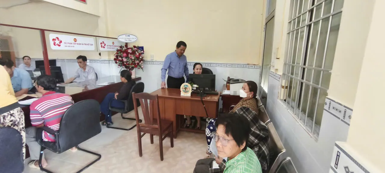 Lãnh đạo phường Hiệp Thành, tỉnh Cà Mau hỗ trợ người dân trong thủ tục hành chính. Ảnh Hoàng Nam