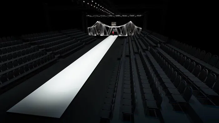 Hình ảnh Cầu Long Biên được tái hiện trên sàn catwalk