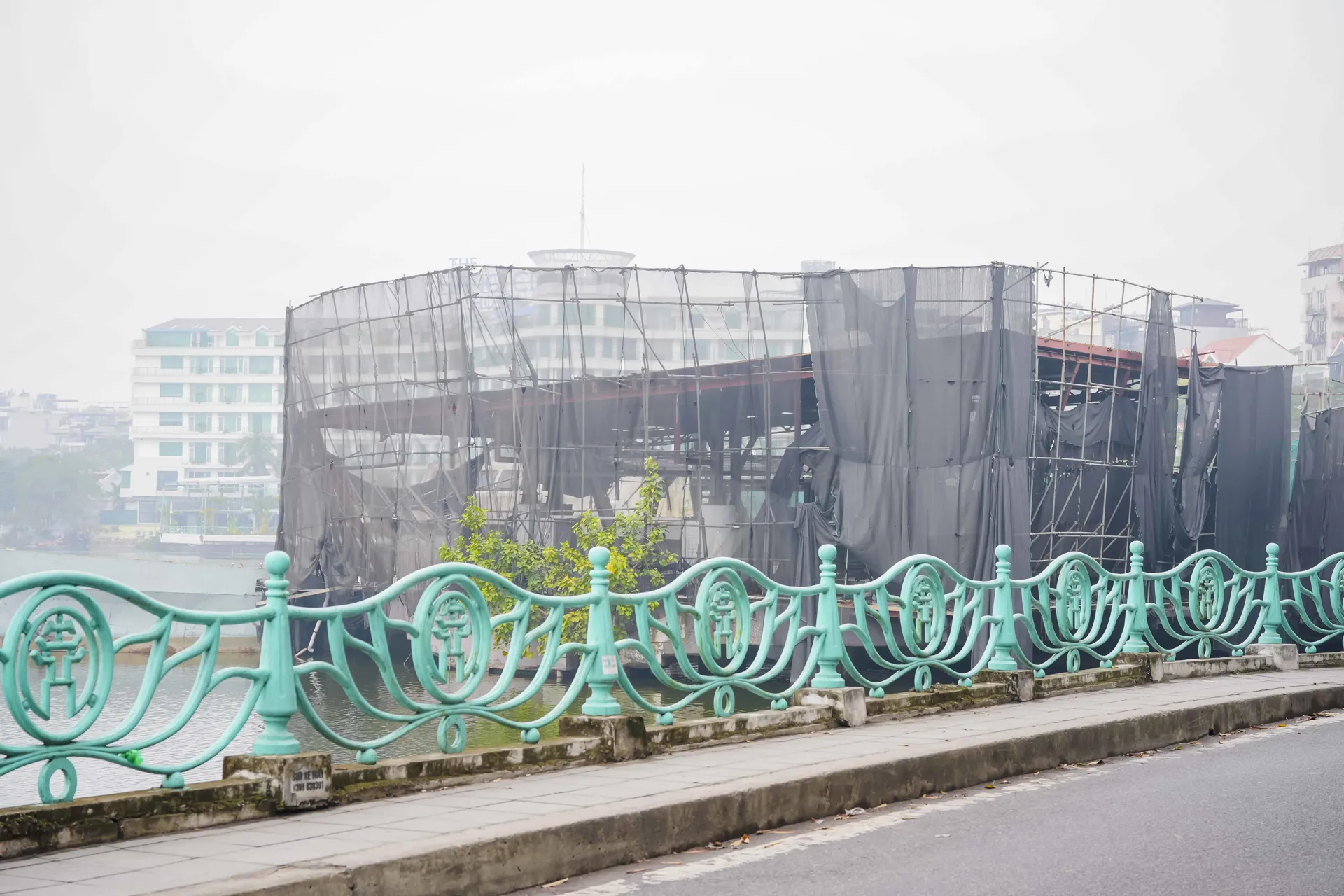 Rải rác các công trình bỏ hoang trên mặt nước Hồ Tây.