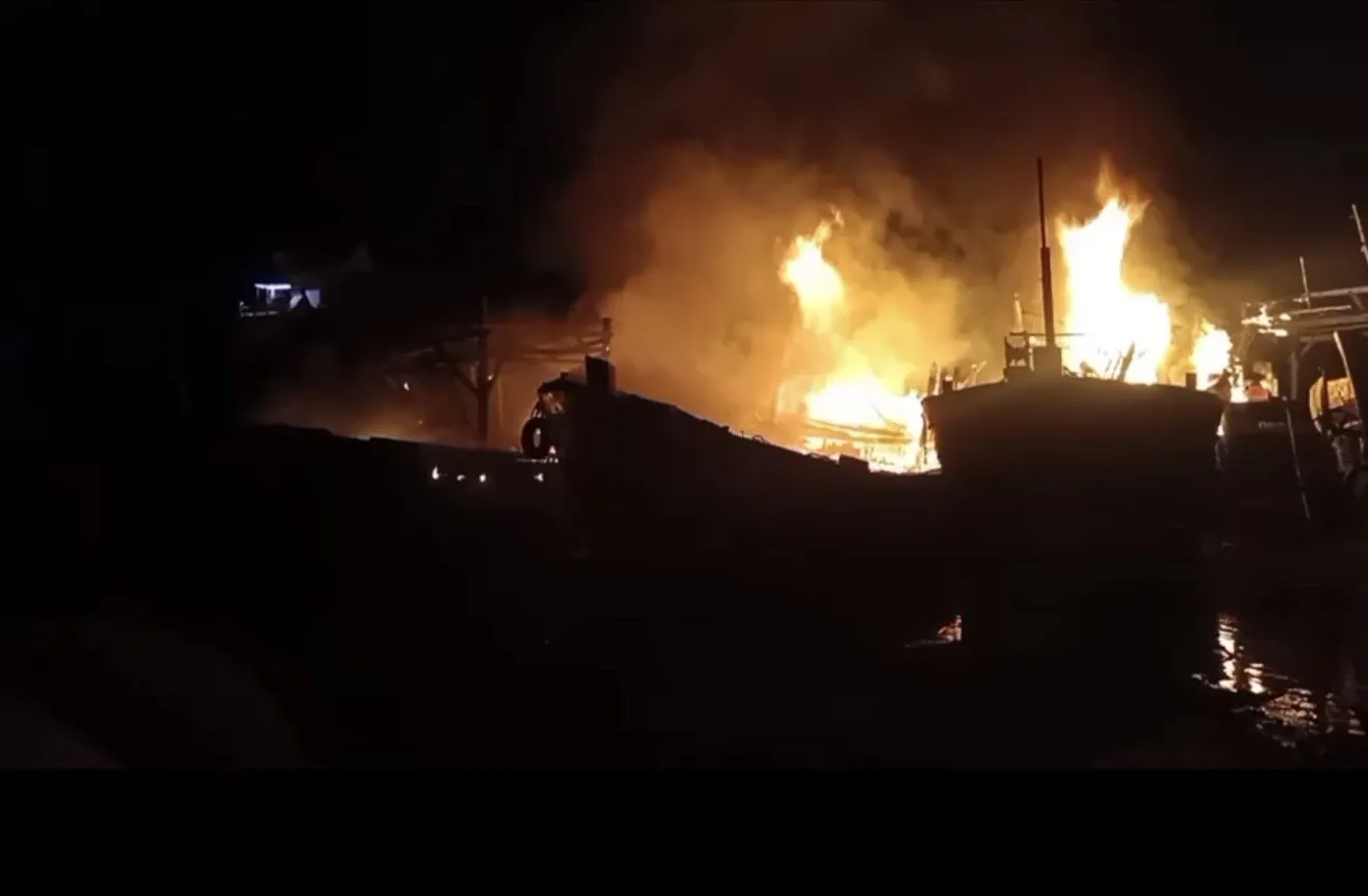 Ngọn lửa xuất phát từ một tàu cá đang neo đậu tại bến, sau đó lan sang các tàu nằm sát bên.