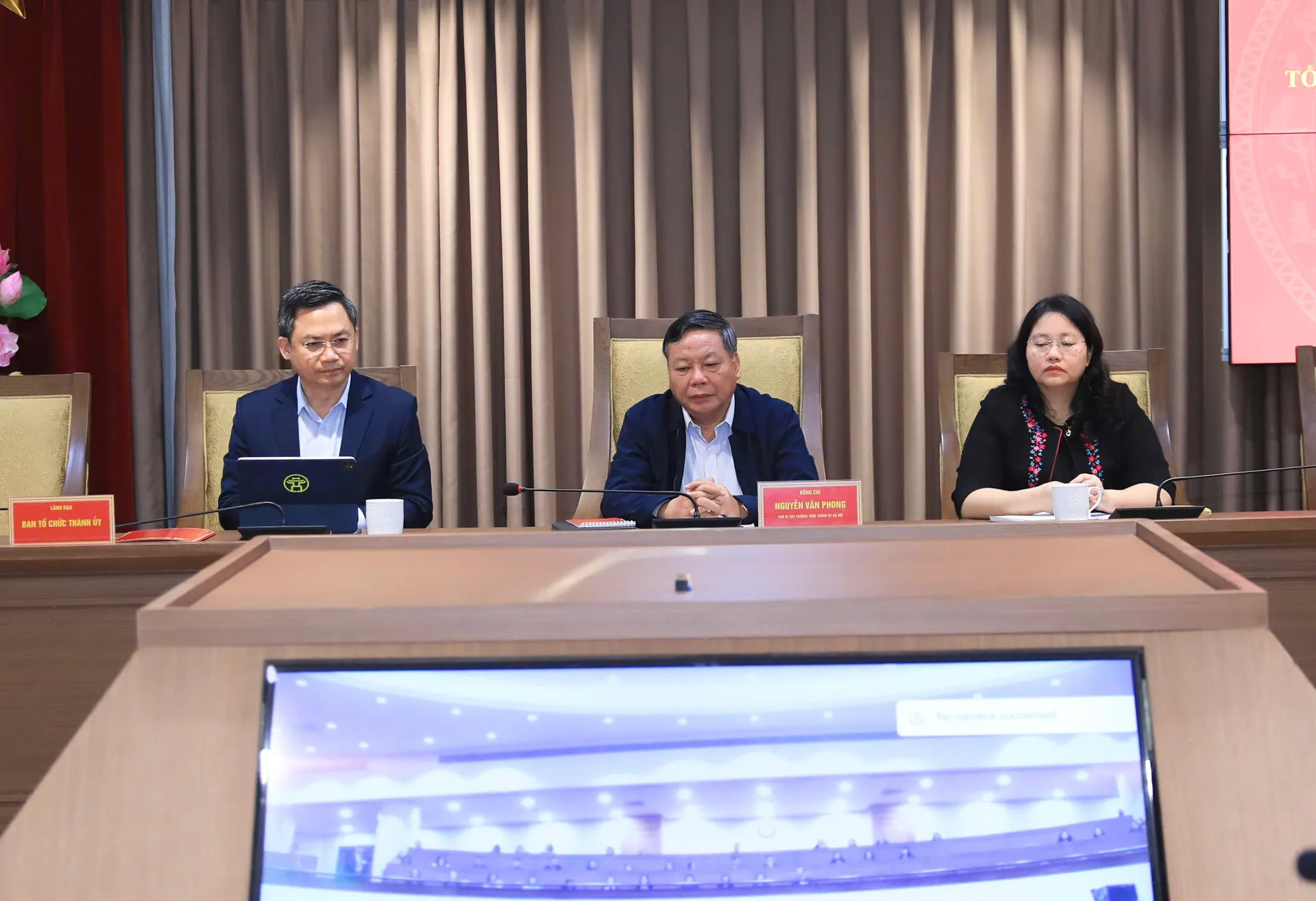Dự tại điểm cầu Thành ủy Hà Nội có các đồng chí: Phó Bí thư Thường trực Thành ủy Hà Nội Nguyễn Văn Phong; Ủy viên Ban Thường vụ Thành ủy, Trưởng ban Tổ chức Thành ủy Hà Nội Hà Minh Hải.