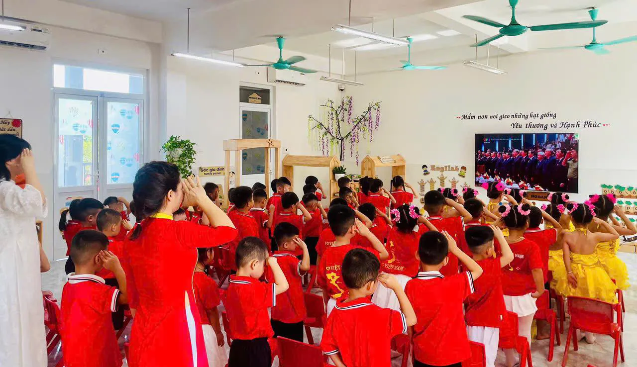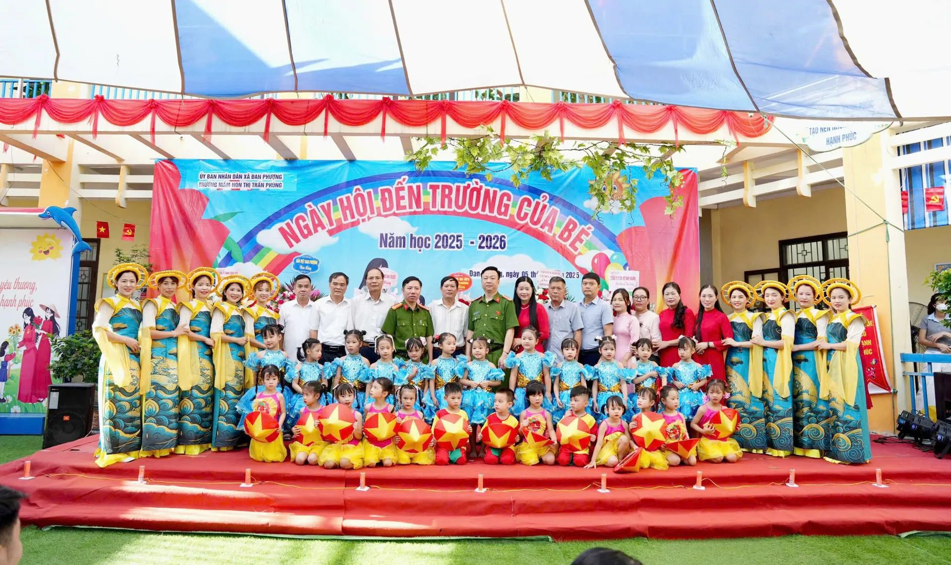 Lễ khai giảng rực rỡ sắc màu của cô và trò Trường Mầm non Liên Trung, xã Ô Diên.