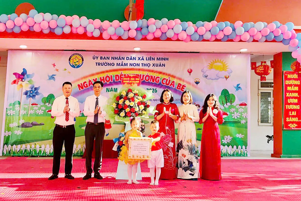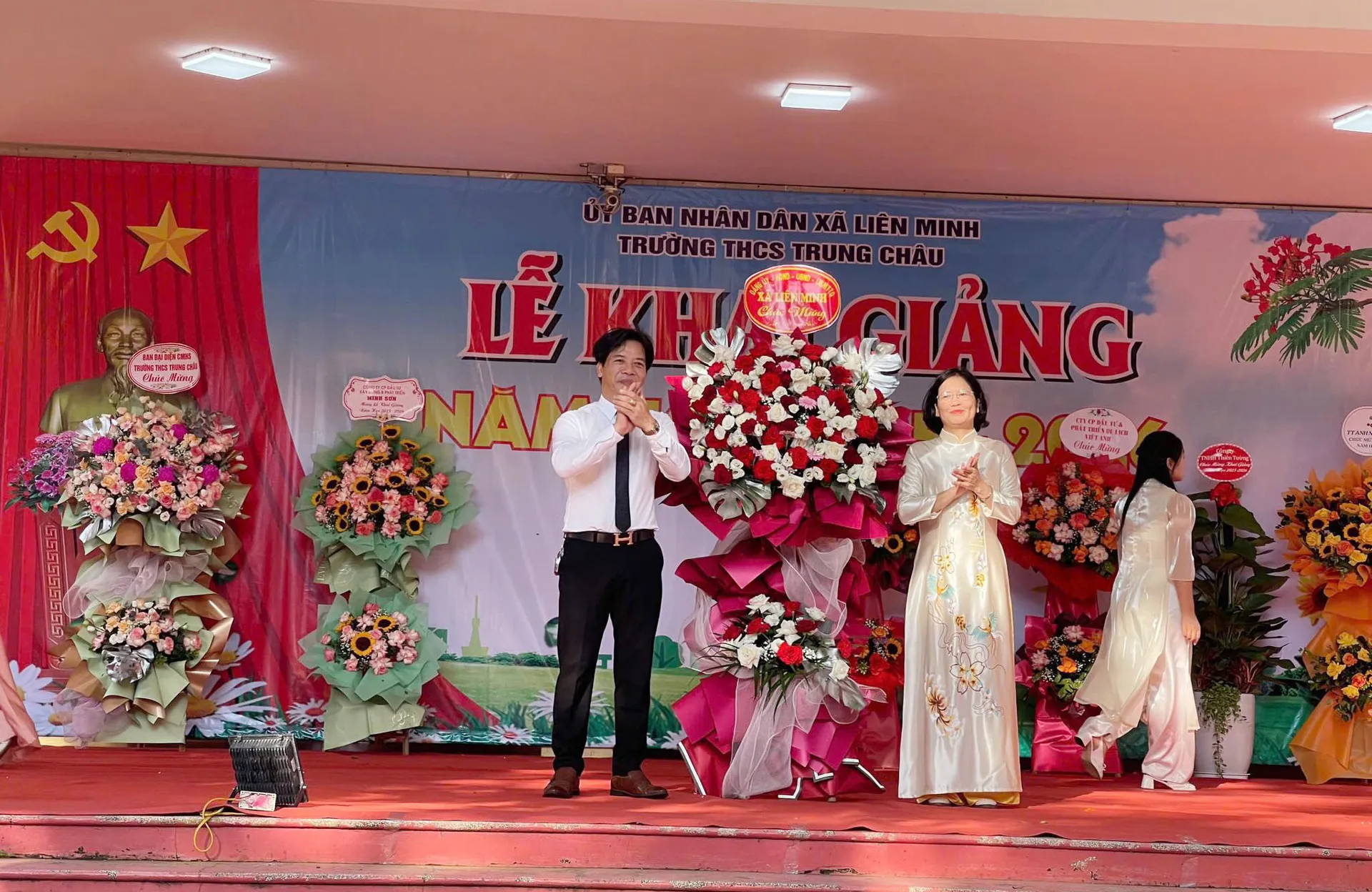 Phó Bí thư Đảng ủy, Chủ tịch UBND xã Liên Minh Nguyễn Quý Mạnh đã đến dự, tặng hoa chúc mừng Lễ khai giảng năm học mới 2025 - 2026 tại Trường Mầm non Thọ Xuân.