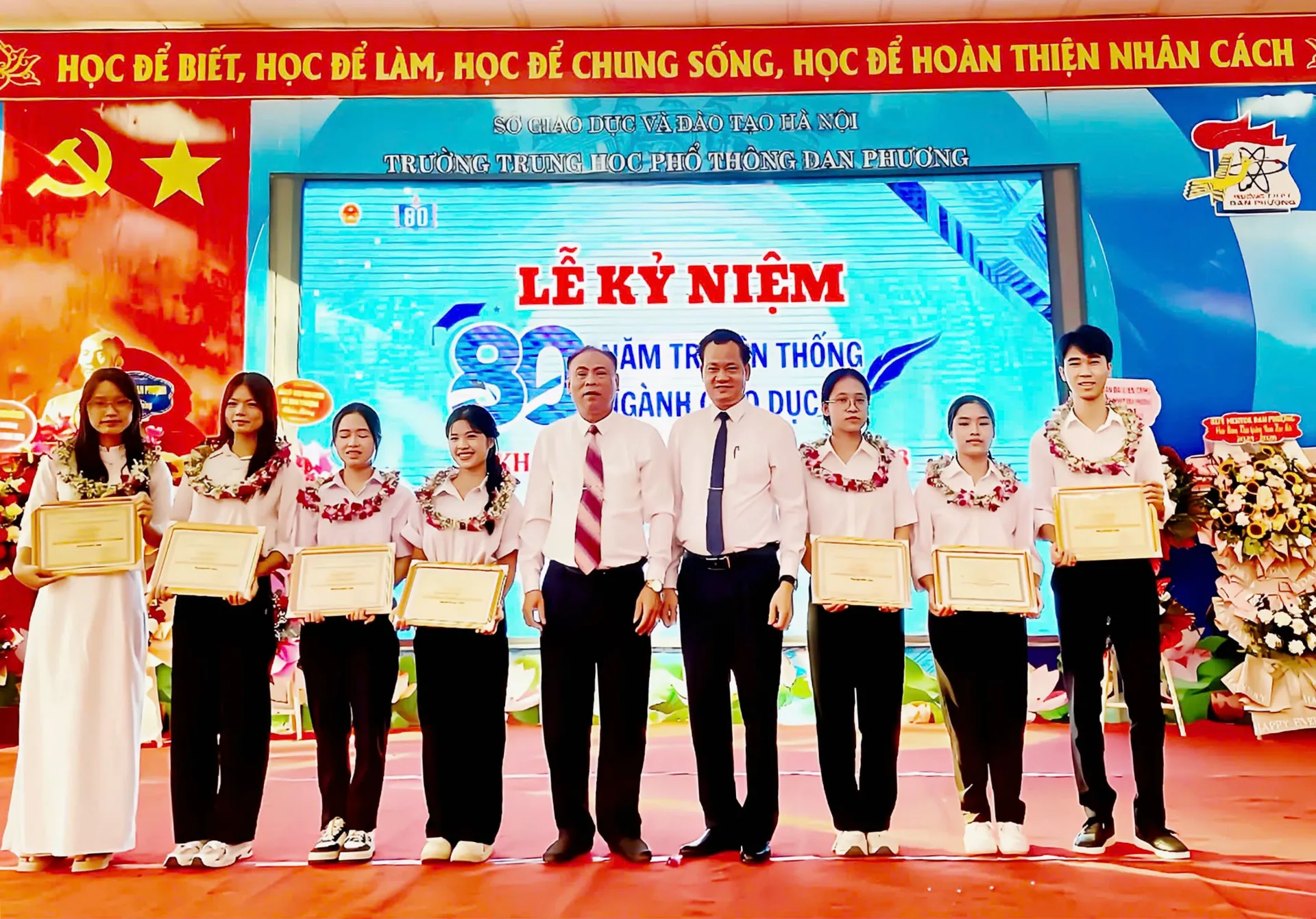 Tại buổi lễ, Trường THPT Đan Phượng đã tuyên dương khen thưởng học sinh đạt điểm cao vào các trường Đại học; học sinh có nhiều thành tích xuất sắc trong học tập năm học 2024 - 2025 và học sinh thủ khoa, á khoa vào lớp 10 năm học 2025 - 2026.