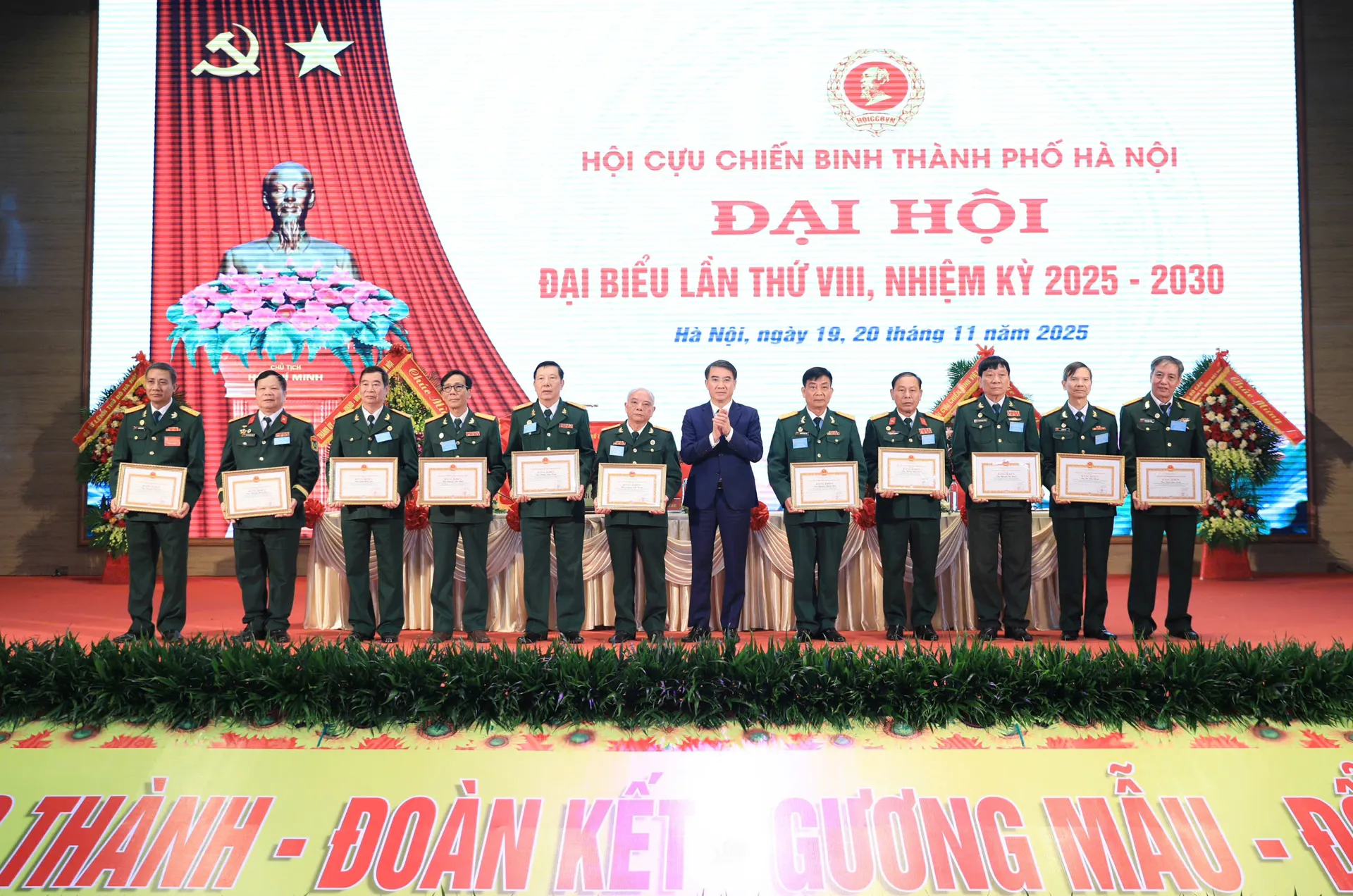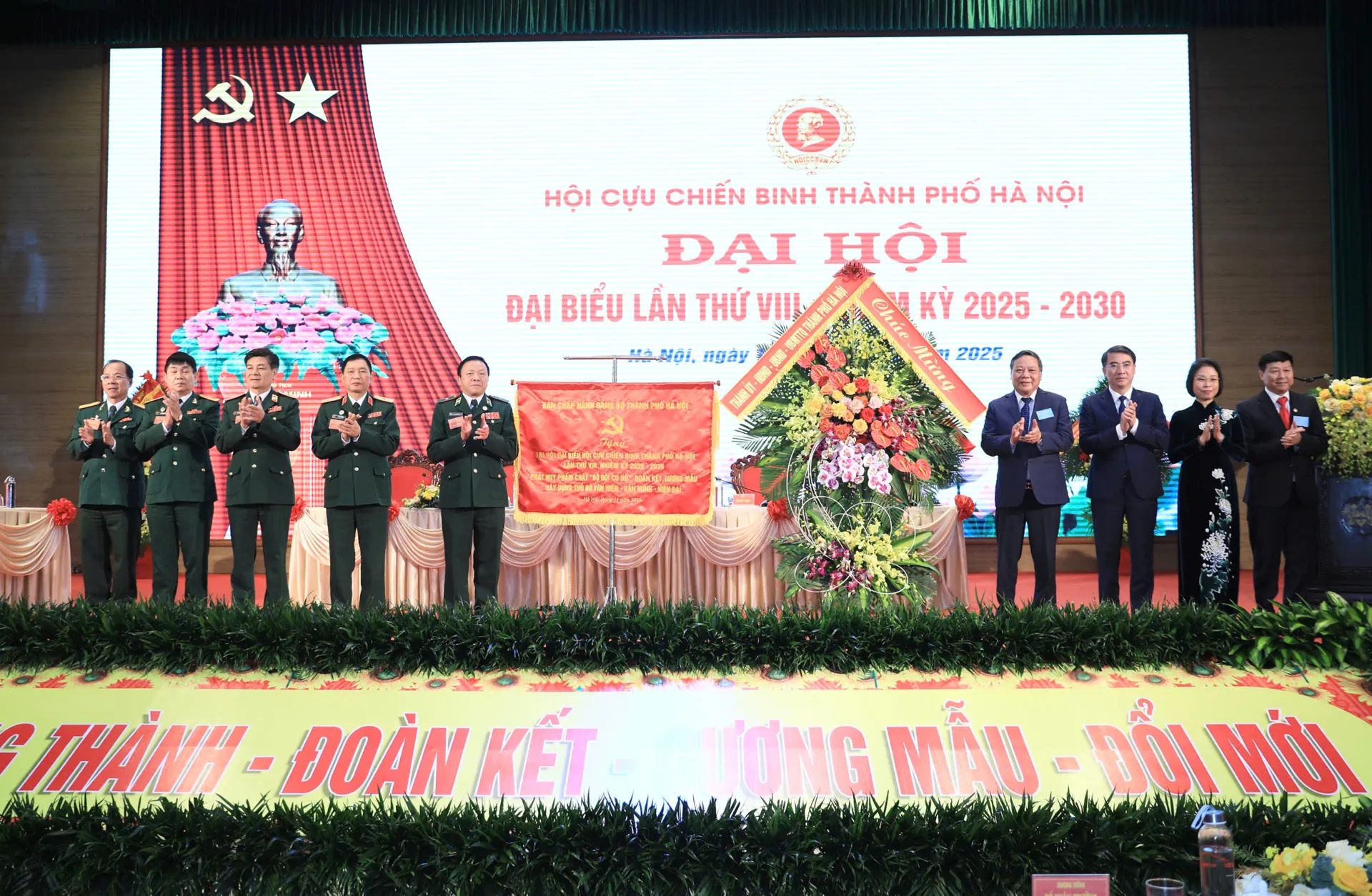 Phó Bí thư Thường trực Thành ủy Nguyễn Văn Phong tặng hoa chúc mừng Hội CCB thành phố khóa VIII, nhiệm kỳ 2025-2030 ra mắt tại Đại hội với 45 thành viên; đồng chí Lê Như Đức tiếp tục được tái cử giữ chức vụ Chủ tịch Hội CCB thành phố Hà Nội, nhiệm kỳ 2025-2030.