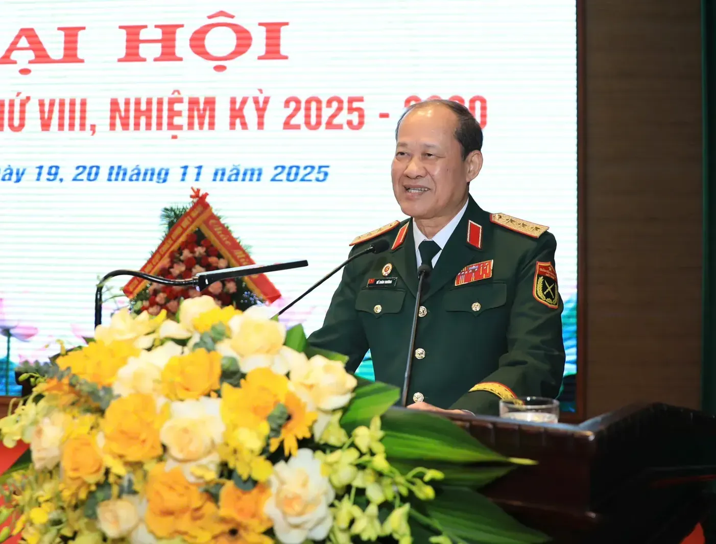 Thượng tướng Bế Xuân Trường tặng lẵng hoa chúc mừng Đại hội.