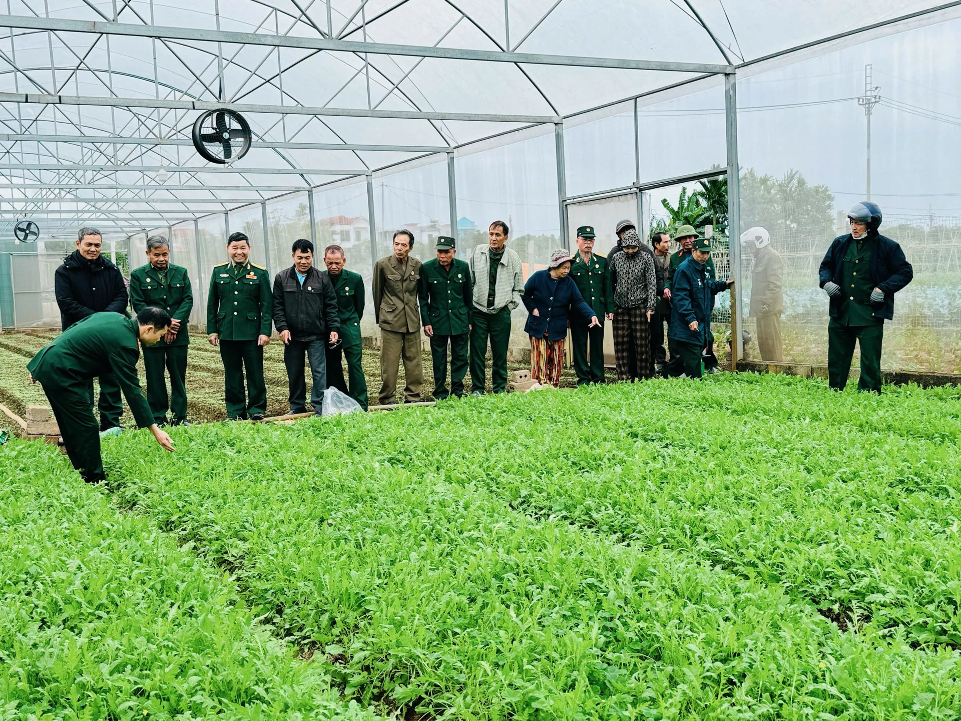 Sau phần lý thuyết, cán bộ, hội viên Hội CCB xã đã được tham quan thực tế mô hình trồng rau sạch chất lượng cao trong nhà kính của gia đình ông Phạm Văn Tá. Tại đây, ông Phạm Văn Tá cho biết: gia đình hiện canh tác trên tổng diện tích khoảng 6 héc-ta, toàn bộ nằm ở vùng bãi thuộc địa bàn xã Nam Phù với khoảng 60 chủng loại rau khác nhau. Do đặc thù vùng bãi có thời điểm bị ngập nước, hiện gia đình tập trung chủ yếu vào các loại rau thời vụ, trong đó nhiều loại mang lại hiệu quả kinh tế cao như rau Rocket (sử dụng hạt giống nhập khẩu, cung cấp cho hệ thống nhà hàng, khách sạn lớn), các loại xà lách cao cấp như xà lách cuộn tím, cuộn trắng, Frisee, xà lách thủy tinh, cùng một số loại củ như củ hồi, củ dền.