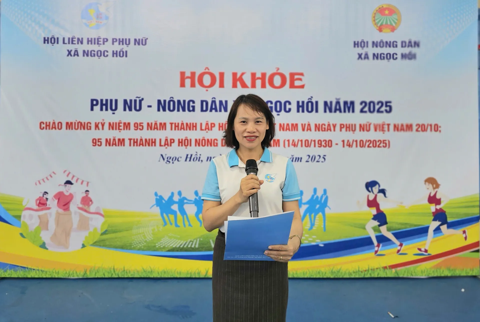 Phát biểu khai mạc, Phó Chủ tịch Ủy ban MTTQ Việt Nam xã Ngọc Hồi - Chủ tịch Hội LHPN xã Phạm Thị Bích Thủy nhấn mạnh: Với tinh thần “Toàn dân rèn luyện thân thể theo gương Bác Hồ vĩ đại”, hội khỏe là sự kiện có ý nghĩa sâu sắc, góp phần lan tỏa phong trào rèn luyện thân thể trong Nhân dân, xây dựng đời sống văn hóa lành mạnh, gắn kết cộng đồng.