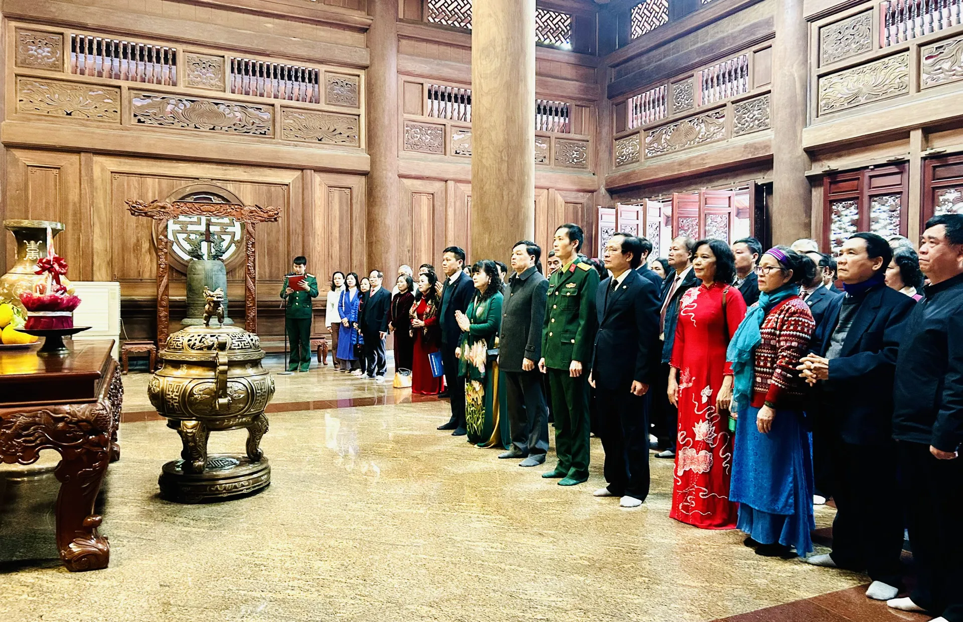 Các đại biểu dâng hương Chủ tịch Hồ Chí Minh tại Khu di tích K9 Đá Chông, TP Hà Nội. Ảnh: Trần Oanh