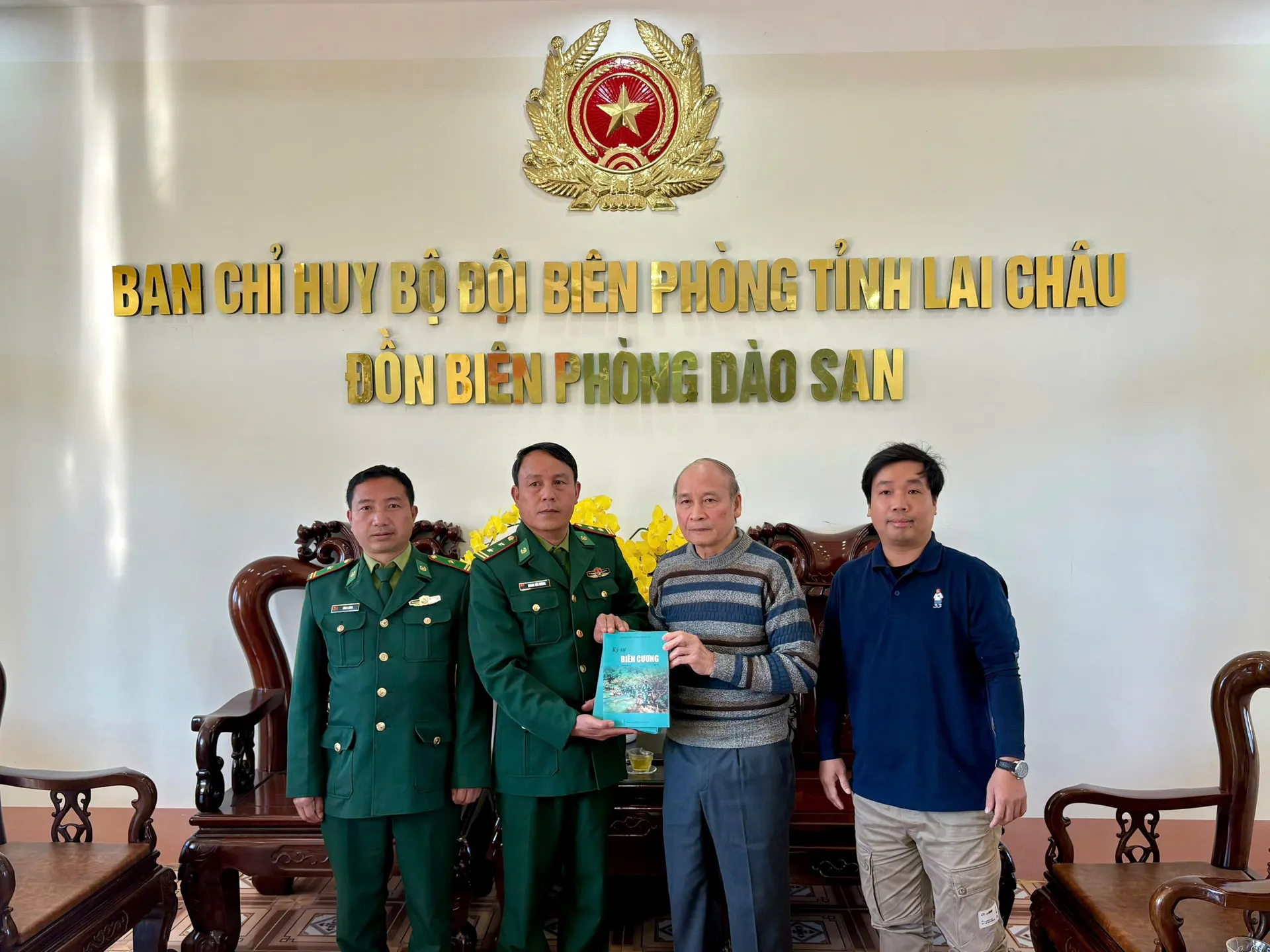 Đoàn công tác chụp ảnh lưu niệm cùng đại diện Đồn Biên phòng Dào San, tỉnh Lai Châu.