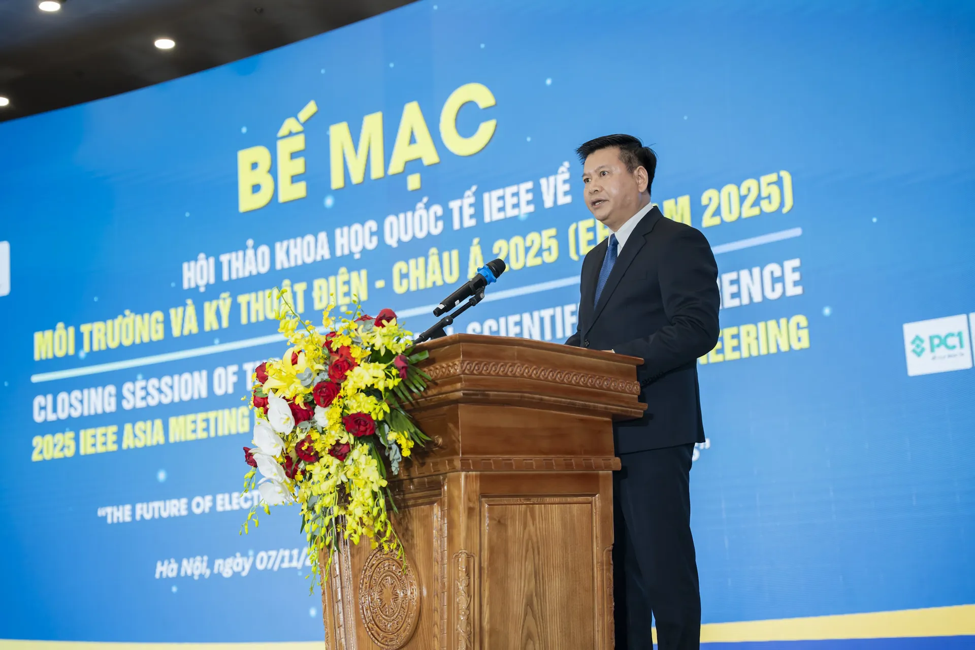 Phát biểu bế mạc hội thảo, PGS.TS Đinh Văn Châu - Hiệu trưởng Trường Đại học Điện lực cho biết: trong suốt ba ngày, với hơn 300 báo cáo, 6 phiên toàn thể và 27 phiên chuyên đề, các đại biểu đã cùng nhau thảo luận các chủ đề sâu rộng, bao quát nhiều lĩnh vực như đa dạng hóa nguồn năng lượng - từ điện hạt nhân, năng lượng tái tạo đến lưu trữ và ổn định hệ thống điện; vật liệu tiên tiến, vi điện tử, bán dẫn, cảm biến từ và vật liệu cách điện cho năng lượng cao áp.