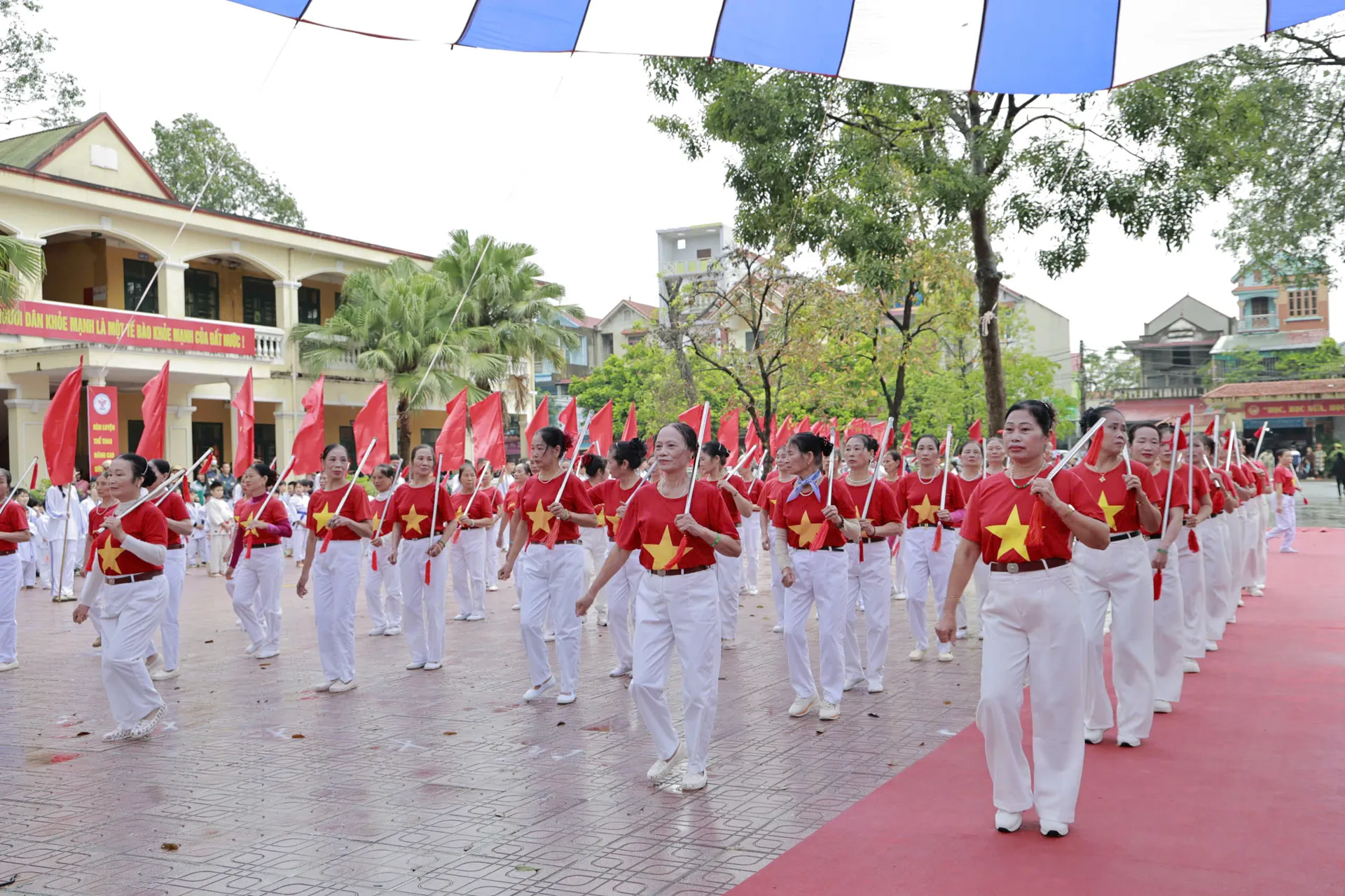 Người dân tham gia đồng diễn tại Đại hội Thể dục Thể thao xã Đa Phúc lần thứ I.