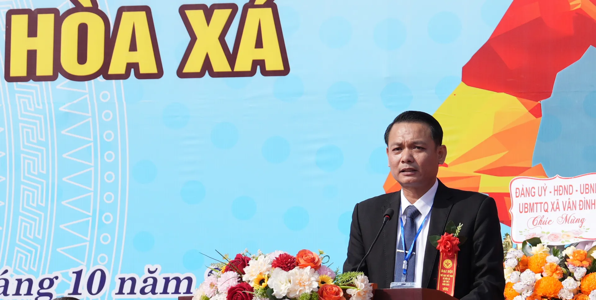 Phó Chủ tịch UBND xã Hòa Xá Nguyễn Văn Cường phát biểu. Ảnh: Lại Tấn