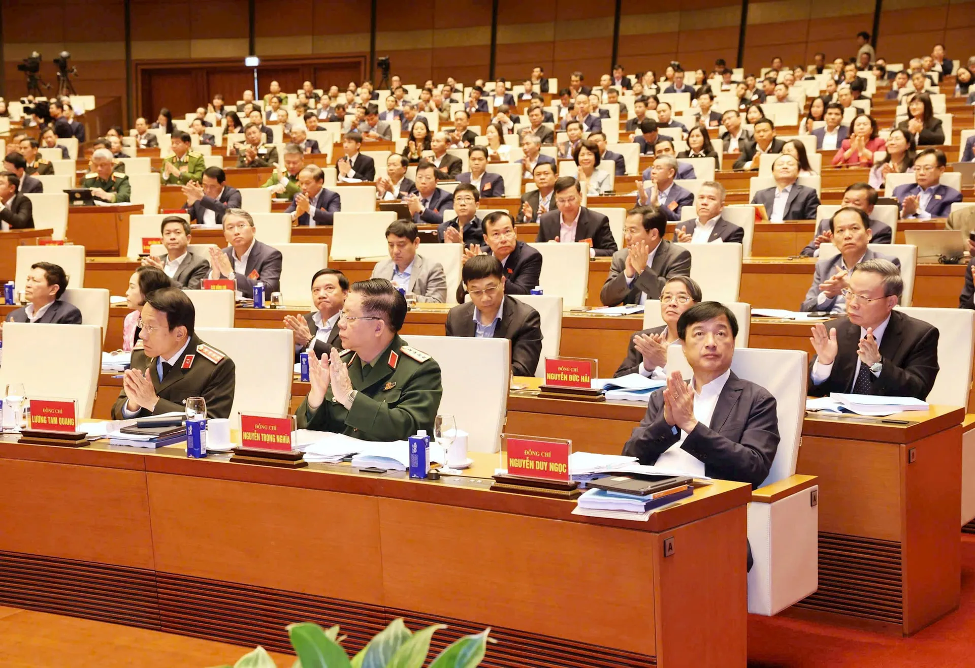 Tổng Bí thư Tô Lâm và các đồng chí lãnh đạo, nguyên lãnh đạo Đảng, Nhà nước tại Hội nghị toàn quốc nghiên cứu, học tập, quán triệt và triển khai thực hiện Nghị quyết Đại hội XIV của Đảng. Ảnh: daibieunhandan