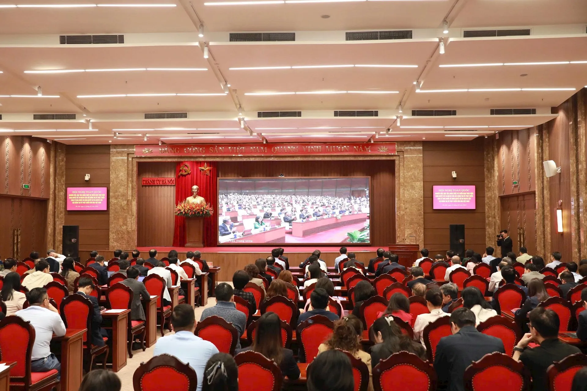 Dự tại điểm cầu Thành ủy Hà Nội có các đồng chí: Ủy viên Trung ương Đảng, Phó Bí thư Thành ủy, Chủ tịch UBND thành phố Vũ Đại Thắng; Ủy viên Trung ương Đảng, Phó Bí thư Thường trực Thành ủy Nguyễn Trọng Đông; Phó Bí thư Thành ủy, Chủ tịch HĐND thành phố Phùng Thị Hồng Hà; Phó Bí thư Thành ủy Nguyễn Văn Phong; các đồng chí Ủy viên Ban Thường vụ Thành ủy; Thường trực HĐND, UBND thành phố, Ủy ban MTTQ Việt Nam thành phố...
