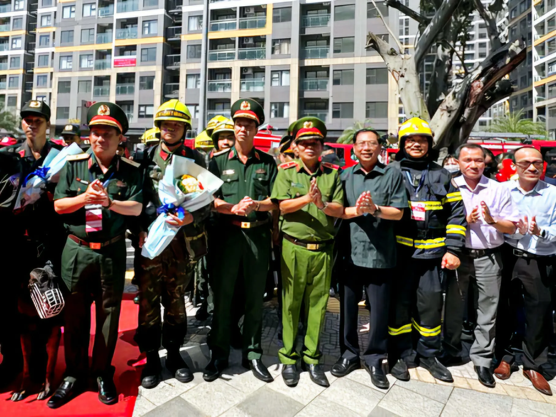 Ngay khi tiếp nhận thông tin, lực lượng PCCC chuyên nghiệp phối hợp lực lượng tại chỗ khẩn trương triển khai dập lửa, cứu người, sơ tán cư dân ra khỏi khu vực nguy hiểm. Cuộc diễn tập huy động tổng cộng hơn 3.100 người, gồm lực lượng chữa cháy chuyên nghiệp, cứu nạn cứu hộ, y tế, an ninh – trật tự, hậu cần và lực lượng PCCC cơ sở.