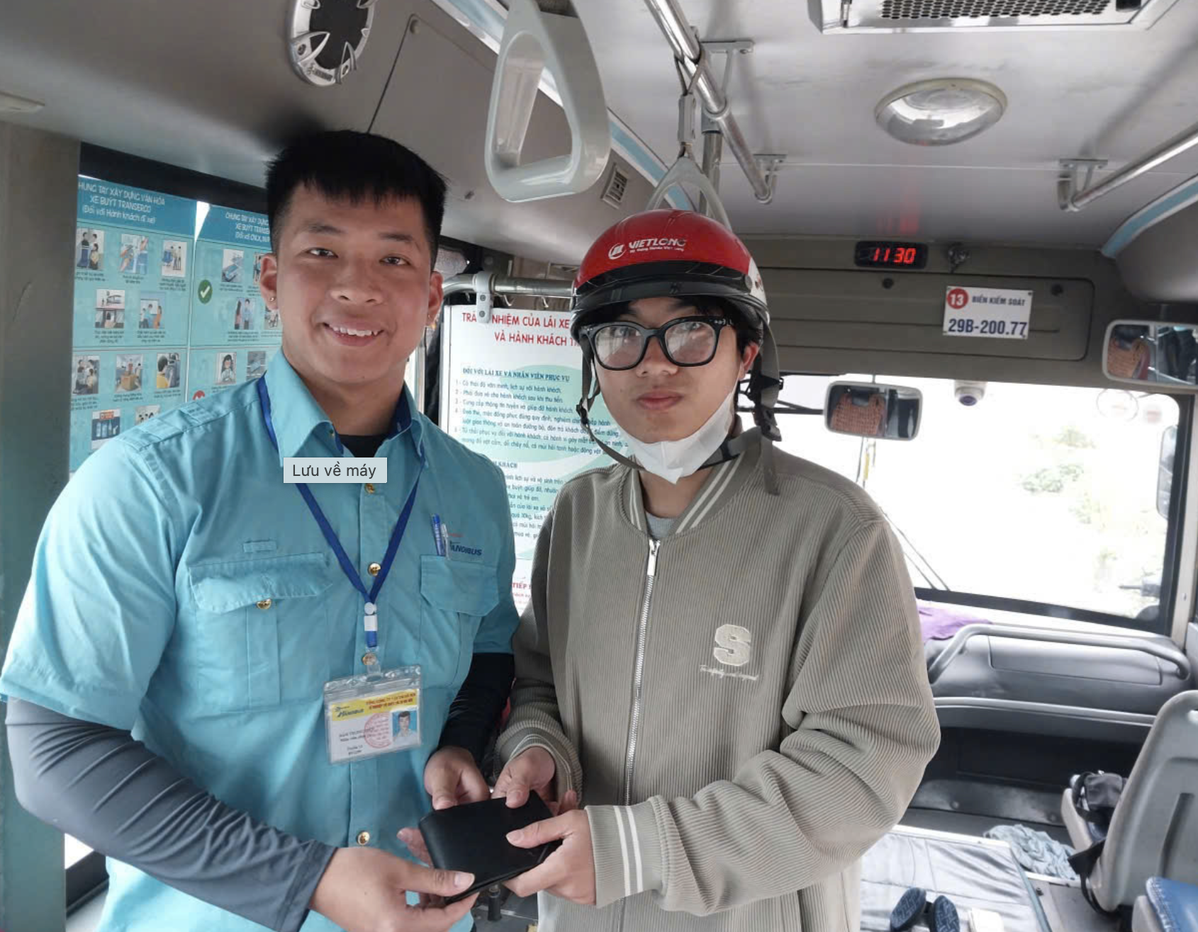 Một hành khách nhận lại tài sản bỏ quên trên xe buýt.
