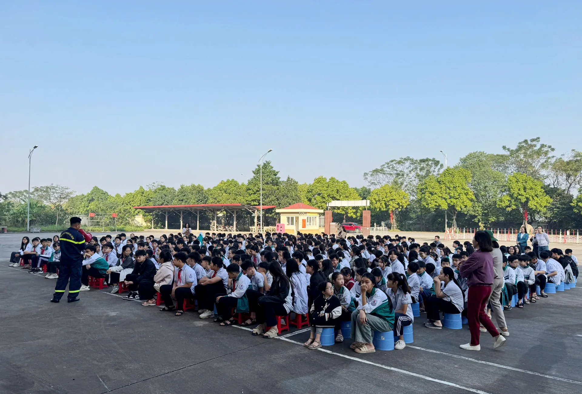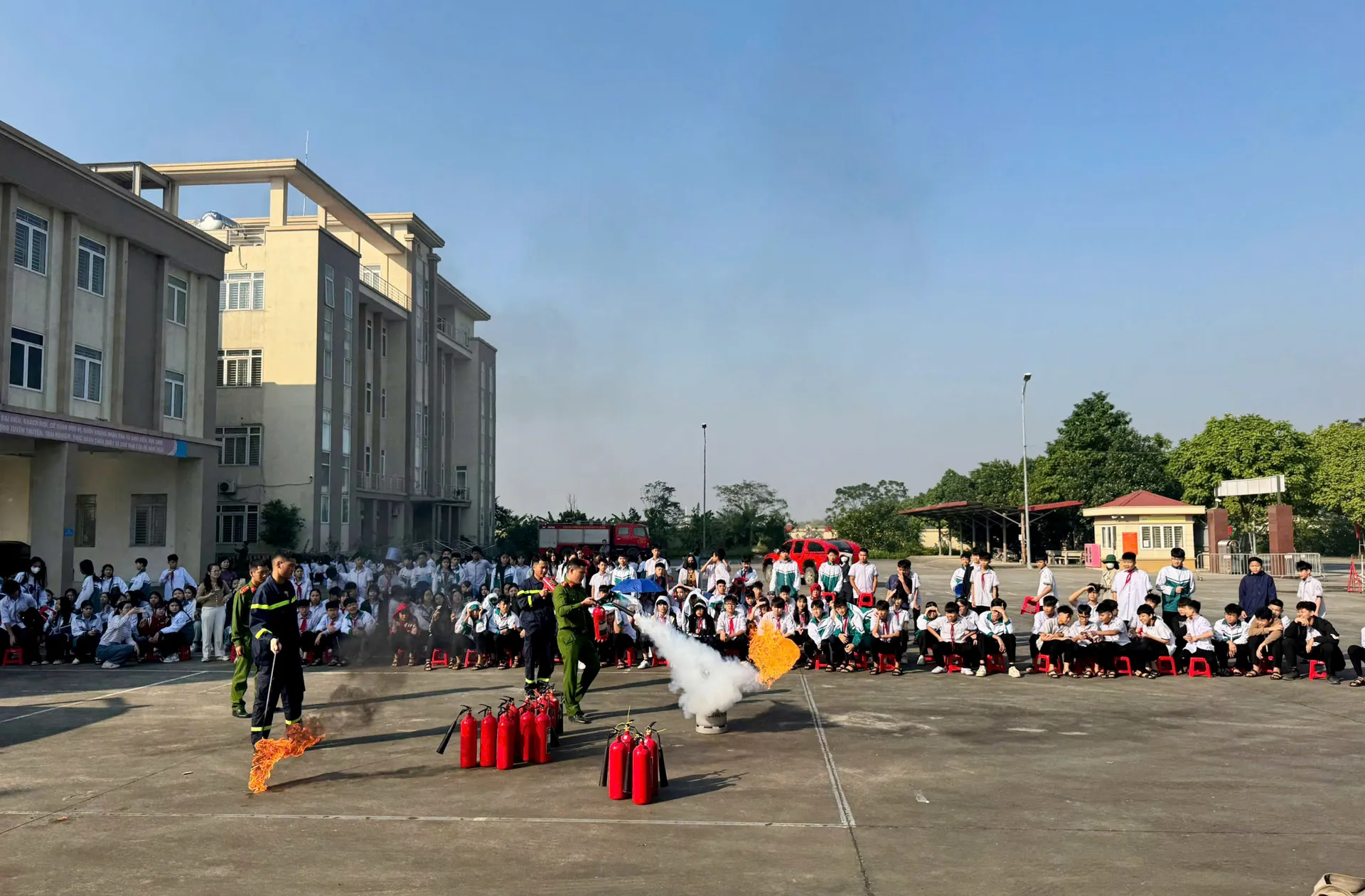 Học sinh được tuyên truyền kiến thức về phòng cháy chữa cháy.