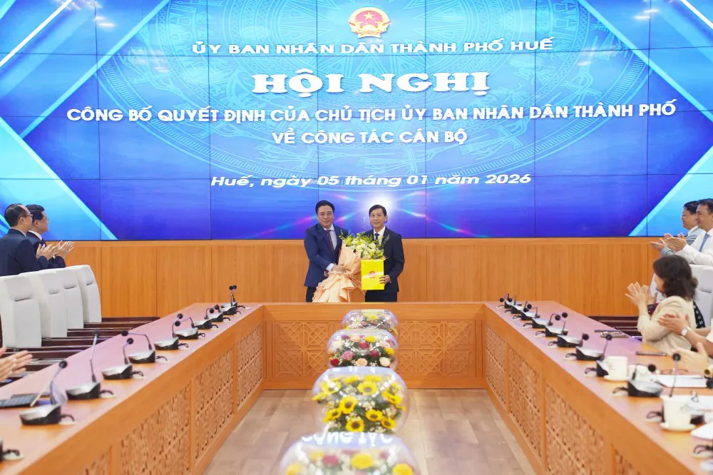 Tại hội nghị, Giám đốc Sở Nội vụ thành phố Nguyễn Văn Mạnh công bố Quyết định số 3999/QĐ-UBND ngày 29/12/2025 của Chủ tịch UBND thành phố về việc bổ nhiệm ông Lê Chí Kiên, Trưởng phòng Tổng hợp, Văn phòng UBND thành phố, giữ chức Phó Chánh Văn phòng UBND thành phố Huế. Thời hạn bổ nhiệm là 5 năm, kể từ ngày 5/1/2026 đến ngày 4/1/2031.