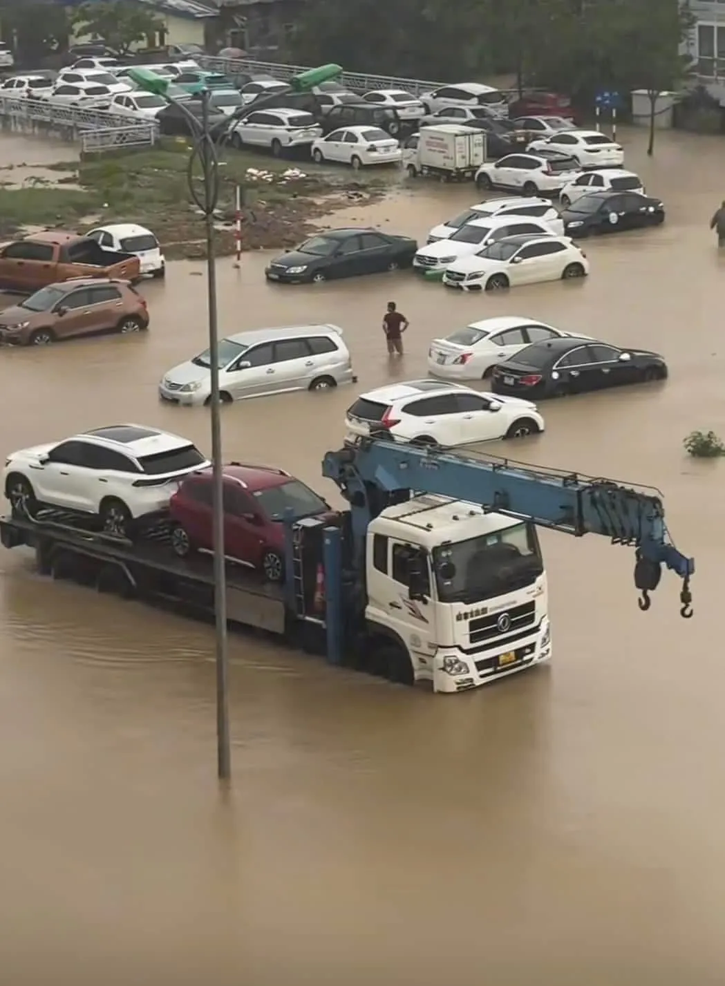 Không chỉ dịch vụ chở khách, hoạt động “giải cứu” ô tô bằng xe cẩu cũng sôi động không kém. Lũ lên nhanh khiến nhiều người không kịp di chuyển xe ra khỏi vùng thấp, buộc phải thuê xe cẩu để đưa phương tiện đến nơi an toàn.