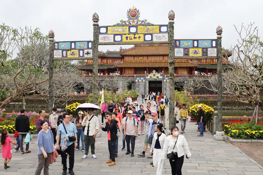 Theo báo cáo của Sở Du lịch thành phố Huế, trong ngày 21/2, tổng lượng khách đến Huế ước đạt 46.820 lượt. Trong đó, khách quốc tế ước đạt 22.942 lượt, khách nội địa ước đạt 23.878 lượt. Doanh thu từ du lịch ước đạt 109 tỷ đồng.