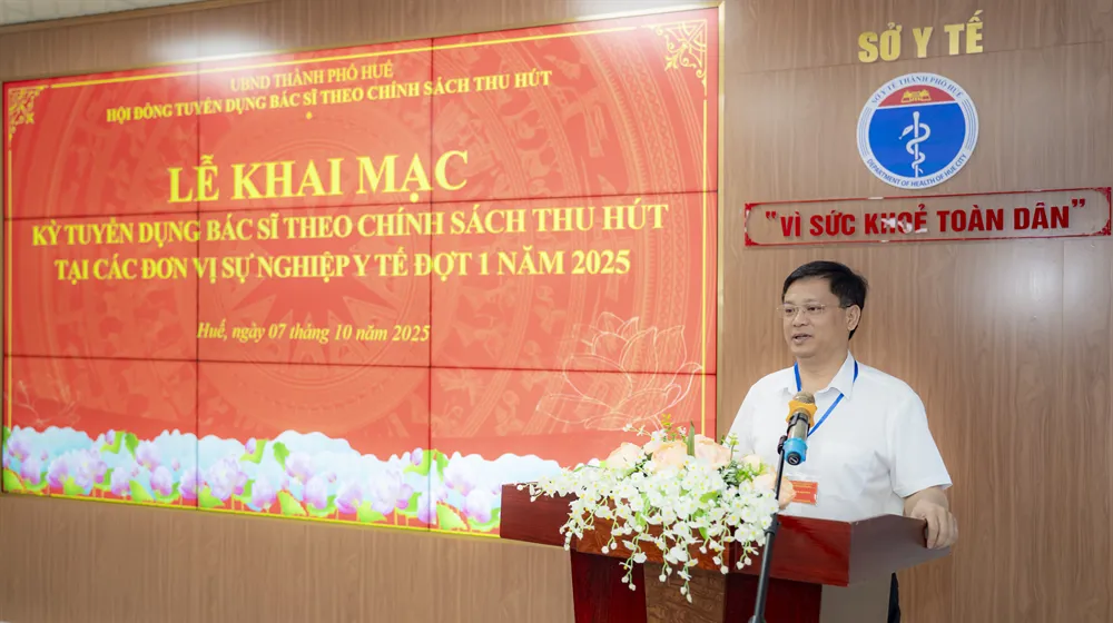 Phát biểu tại buổi khai mạc, Phó Chủ tịch Thường trực UBND thành phố Nguyễn Thanh Bình chúc mừng 12 thí sinh đủ điều kiện tham dự vòng 2, đồng thời nhấn mạnh: “Kỳ tuyển dụng bác sĩ theo chính sách thu hút của thành phố Huế năm 2025 không chỉ là quá trình tuyển chọn nhân lực, mà còn là hành trình tìm kiếm những trái tim nhiệt huyết, những người thầy thuốc tận tâm, sẵn sàng gắn bó và cống hiến cho sự nghiệp chăm sóc sức khỏe nhân dân trên địa bàn thành phố.”
