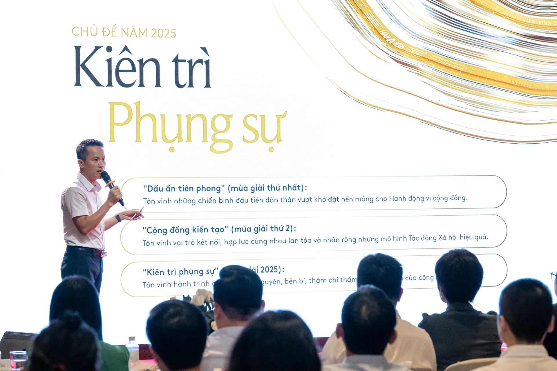 Trong những mùa giải qua, “Dấu ấn tiên phong” (2023) tôn vinh những người mở lối, “Cộng đồng kiến tạo” (2024) khẳng định sức mạnh tập thể, thì đến năm 2025, với chủ đề “Kiên trì phụng sự”, giải thưởng nhấn mạnh sự bền bỉ nuôi dưỡng giá trị nhân văn để lan tỏa lâu dài.