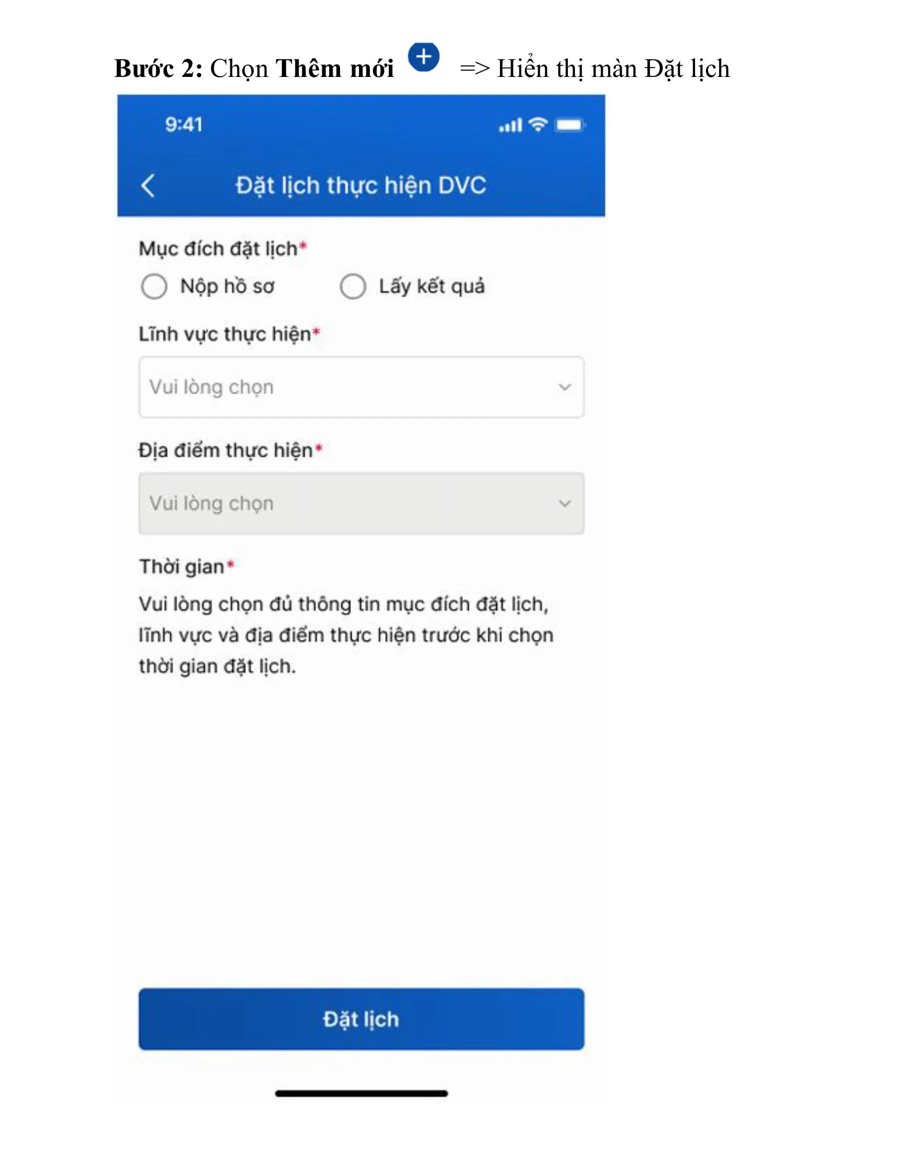 Bước 2: Chọn chức năng Thêm mới, hệ thống sẽ hiển thị giao diện Đặt lịch.