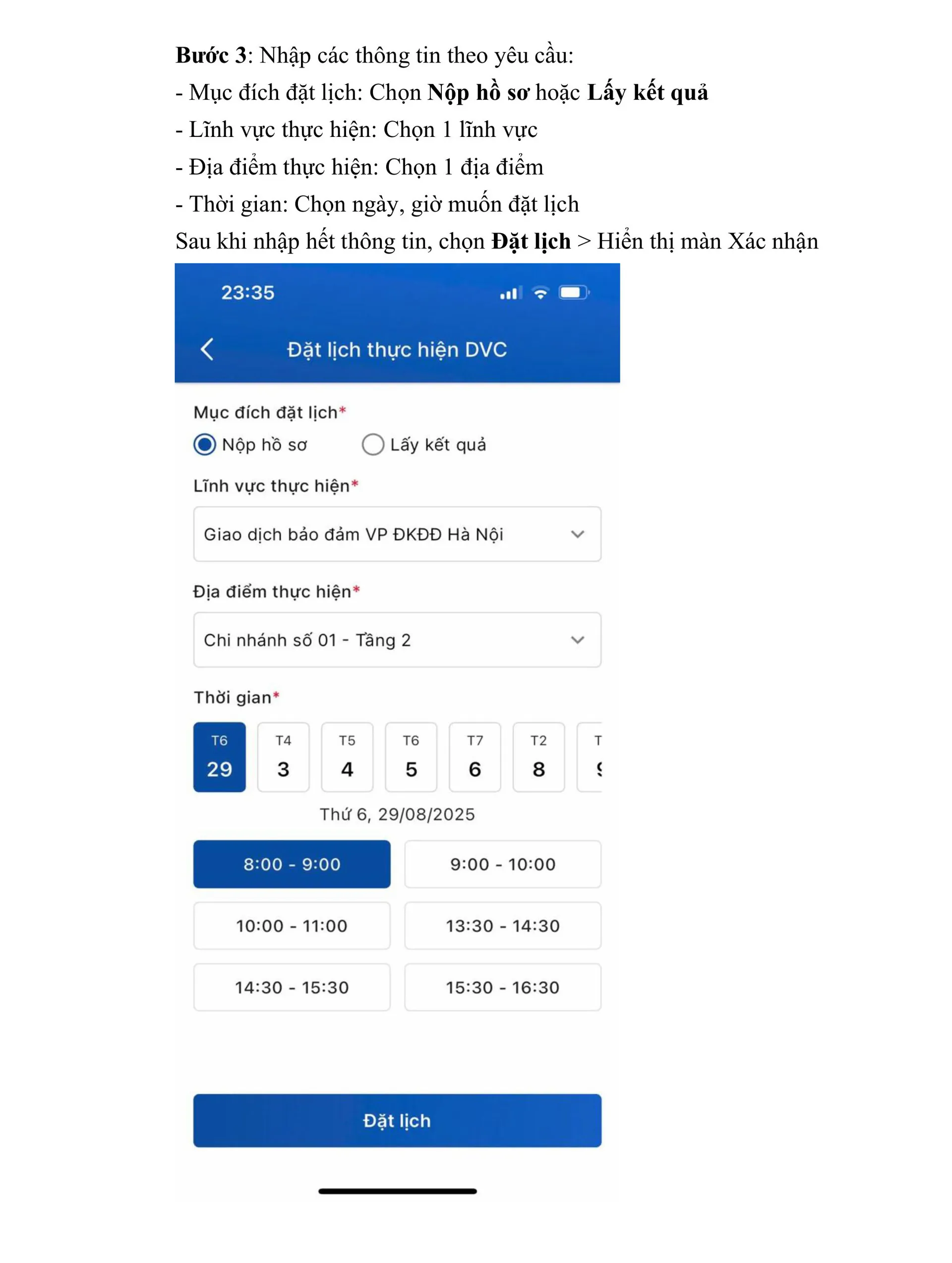 Bước 4: Kiểm tra lại thông tin và nhấn nút Xác nhận để hoàn tất việc đặt lịch. Hệ thống sẽ tự động cấp số thứ tự và ghi nhận lịch hẹn của công dân.
