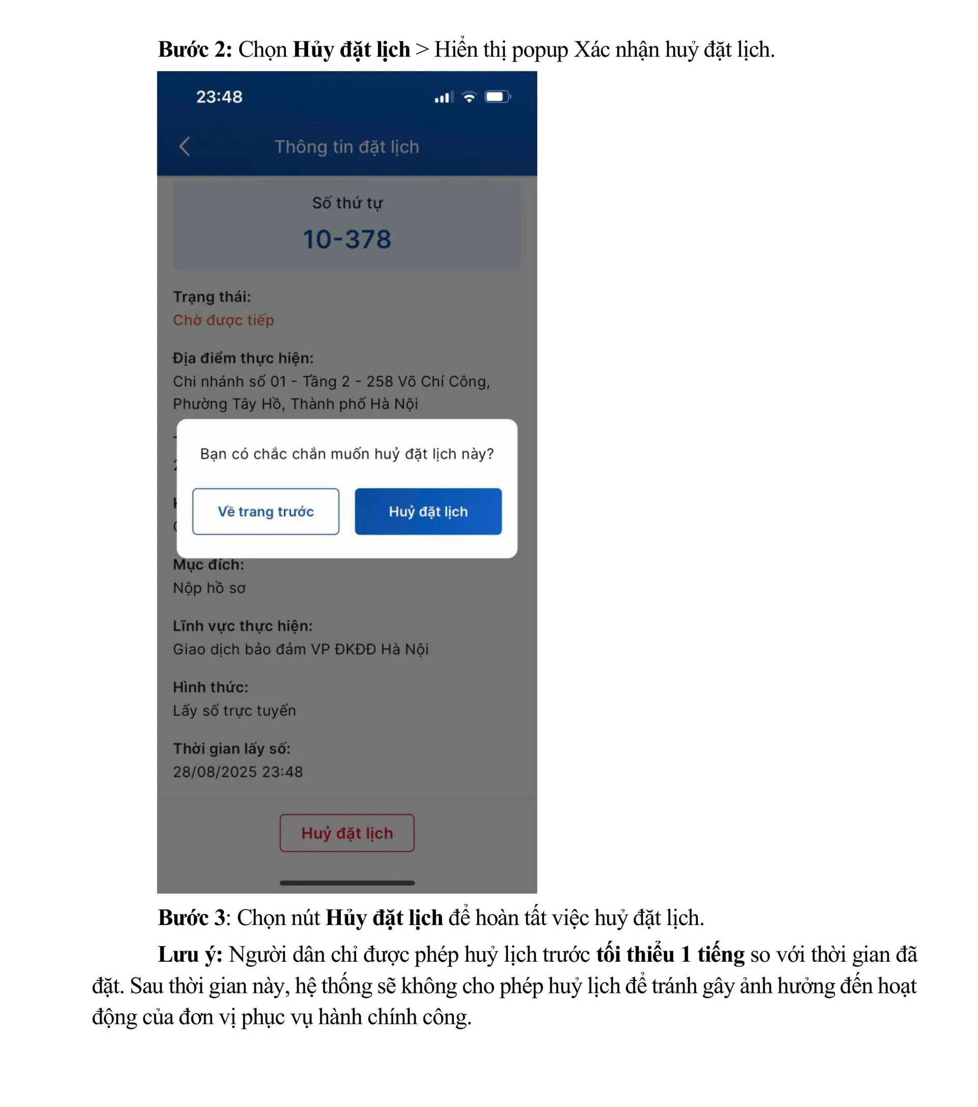 Trường hợp người dân, doanh nghiệp cần hỗ trợ trong quá trình đặt lịch, có thể liên hệ qua các kênh sau: Chi nhánh Trung tâm PVHCC và 476 Đại lý Dịch vụ công trực tuyến: hỗ trợ miễn phí việc hướng dẫn thao tác đặt lịch; tổng đài 1022, nhánh số 7: hỗ trợ từ xa bởi các tổng đài viên; tổng đài thông minh 19001009: giải đáp 24/7; Chatbot, Callbot tích hợp trên ứng dụng iHanoi: hỗ trợ tự động 24/7.