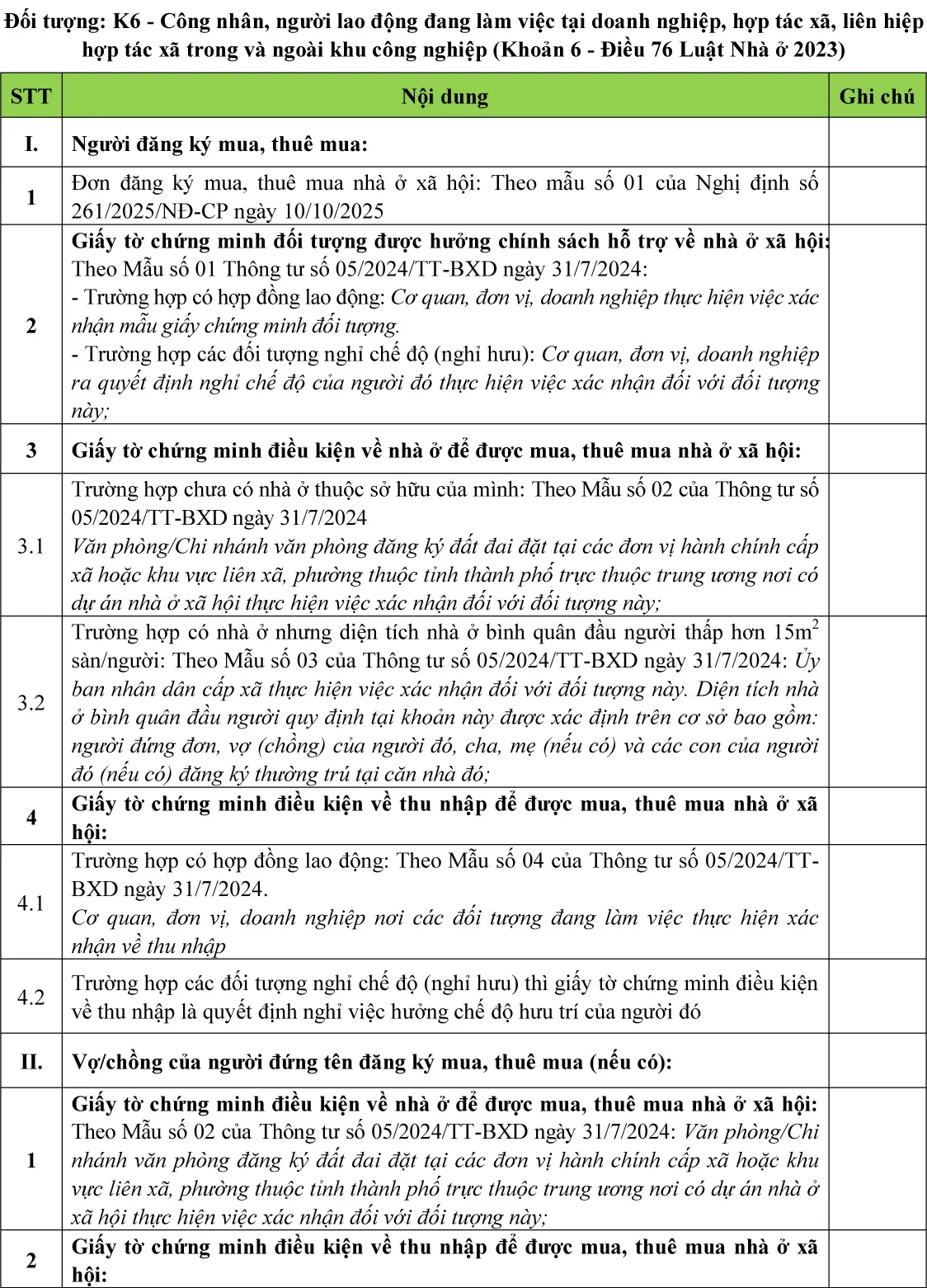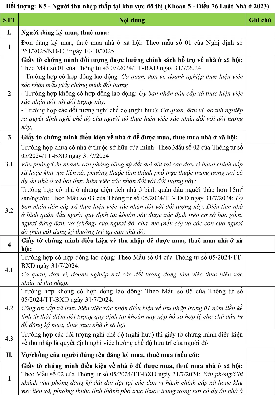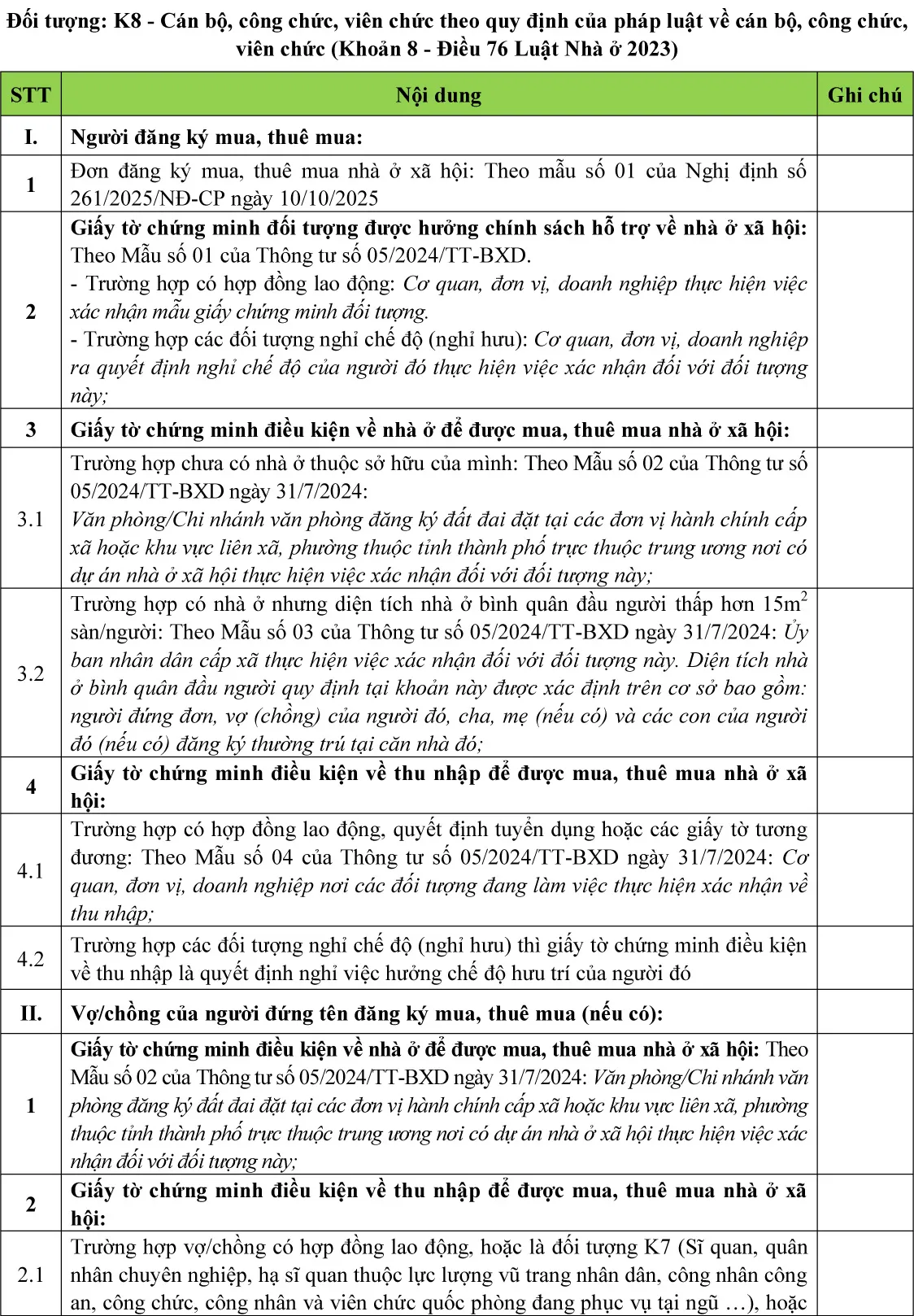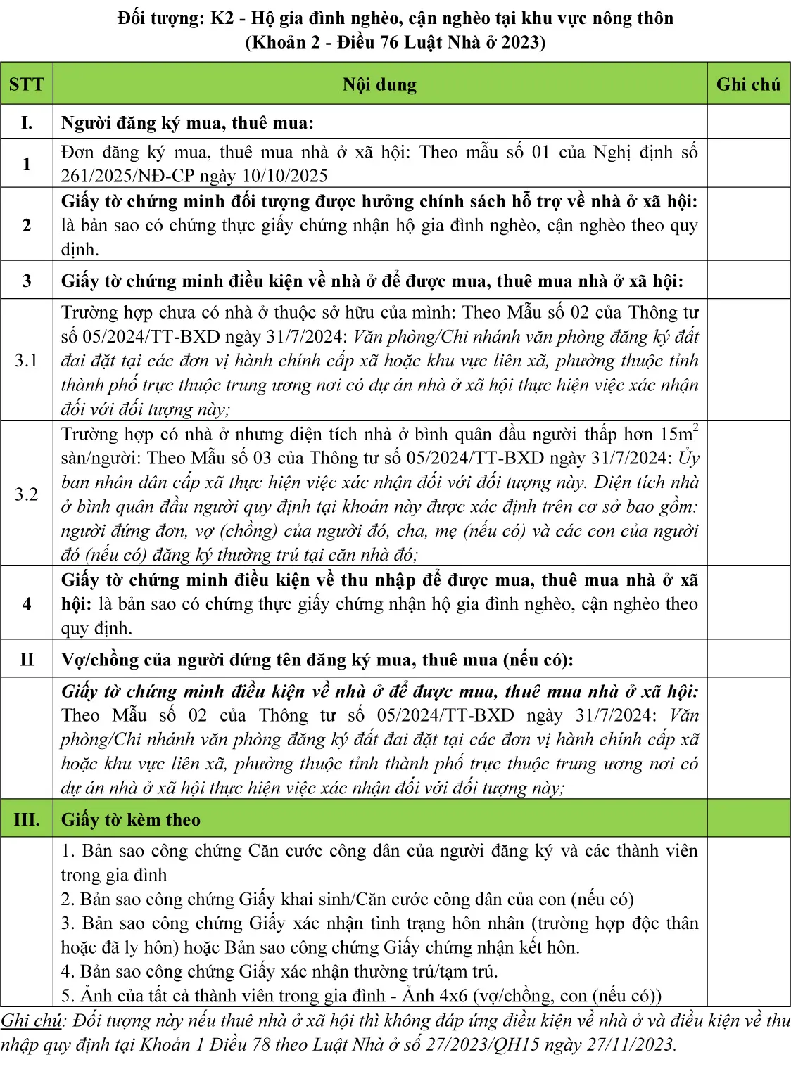 (Chi tiết khách hàng tham khảo thêm tại Luật nhà ở 2023; Nghị định số 100/2024/NĐ-CP ngày 26/7/2024 về phát triển và quản lý nhà ở xã hội; Nghị định số 261/2025/NĐ-CP ngày 10/10/2025; Thông tư số 05/2024/TT-BXD ngày 31/7/2024 về Quy định chi tiết một số điều của Luật Nhà ở; Thông tư 56/2024/TT-BCA ngày 05/11/2024 Quy định chi tiết một số điều của Luật nhà ở trong Bộ công an; Thông tư 94/2024/TT-BQP ngày 11/11/2024 Quy định chi tiết một số điều của Luật nhà ở trong quân đội nhân dân Việt Nam)