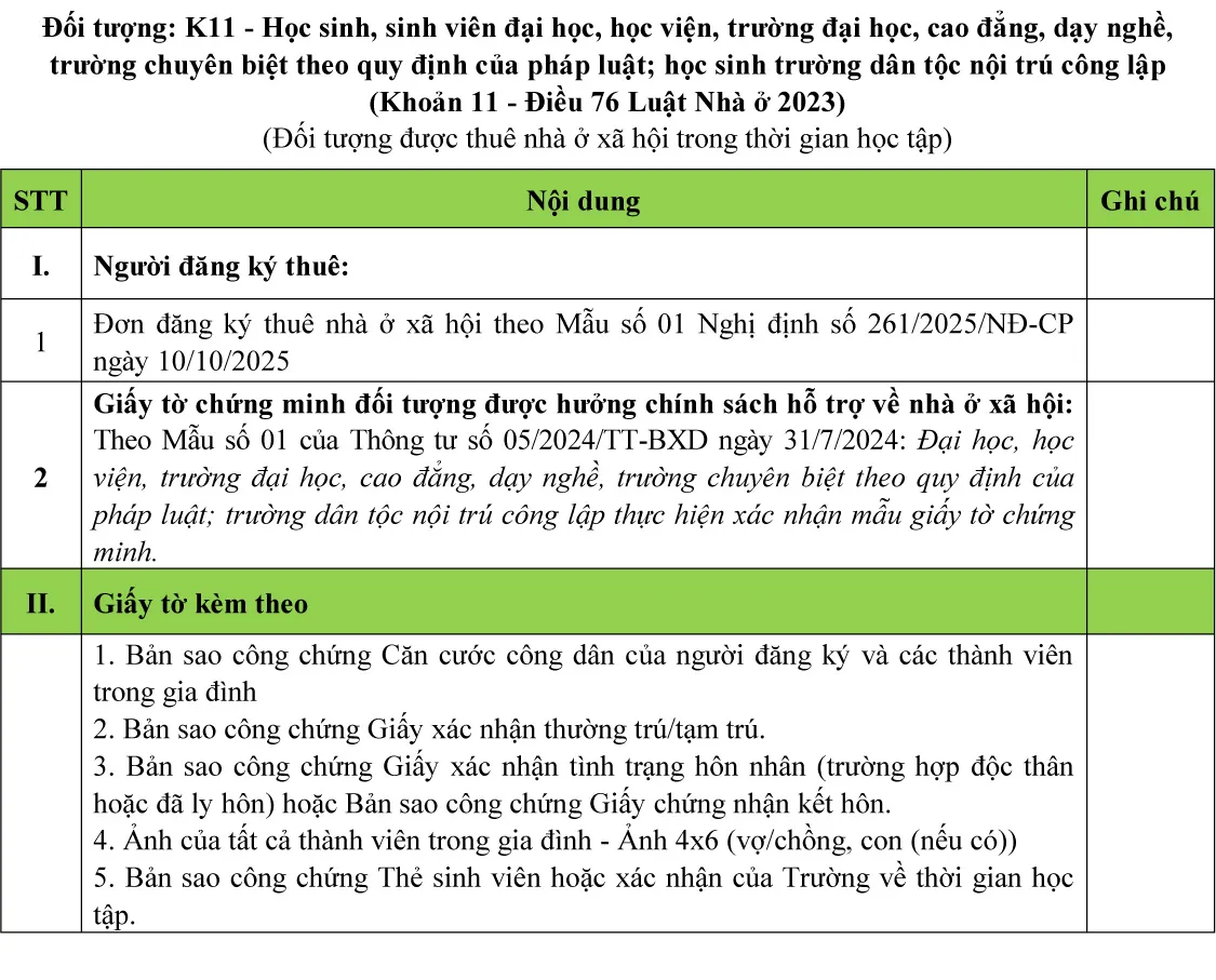+ Đối tượng K11 được thuê nhà ở xã hội trong thời gian học tập;